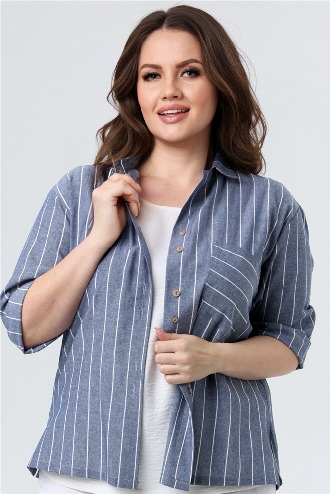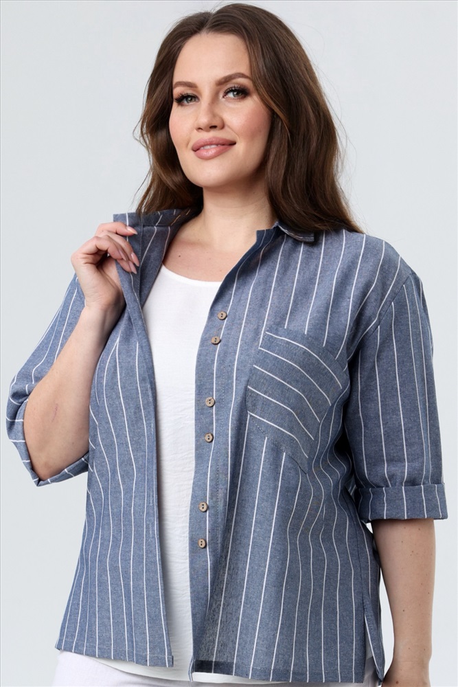 Блузка женская  4432/03/Молочный,синий 3 фото