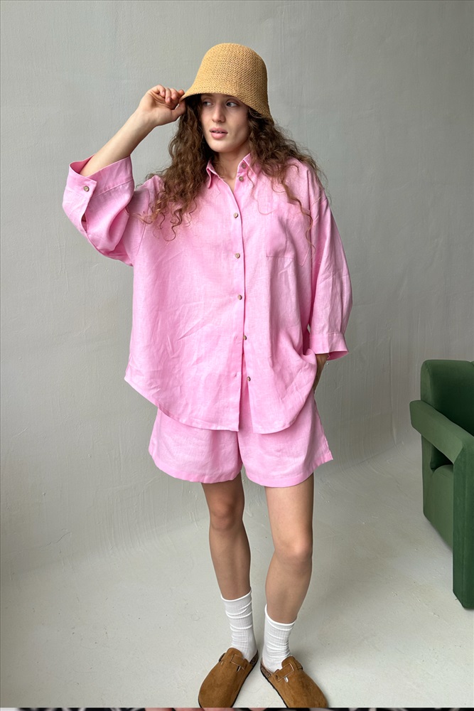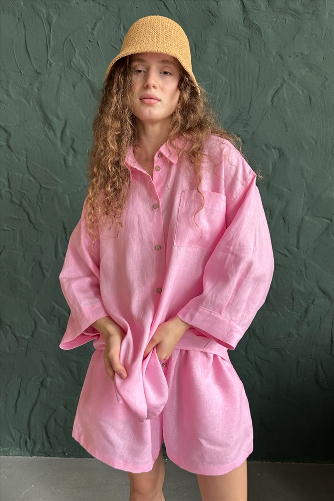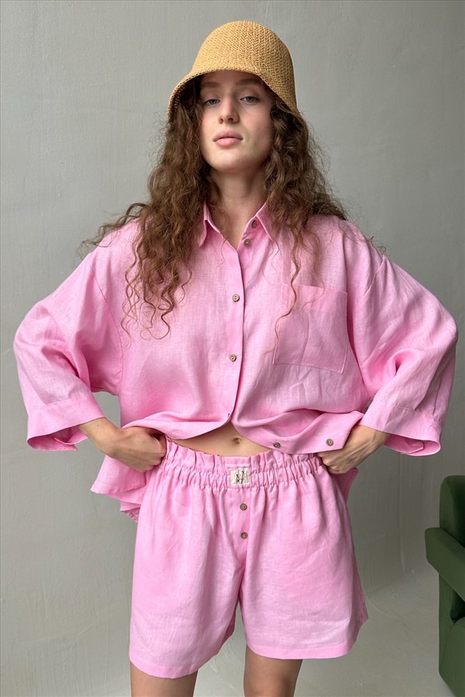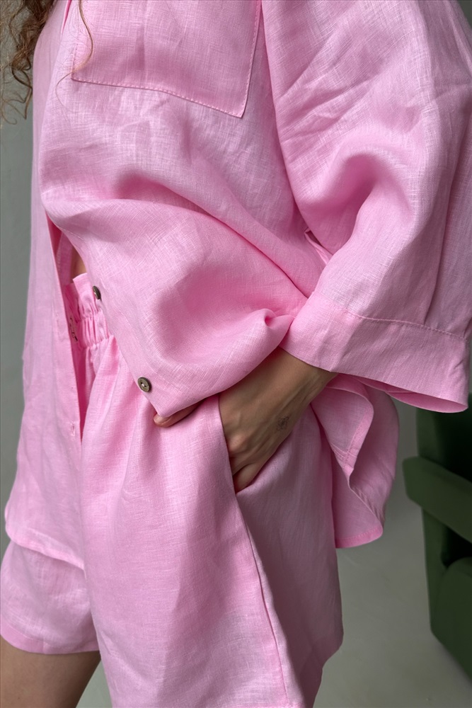 Костюм лён  SET019/27/Нежно-розовый 10 фото