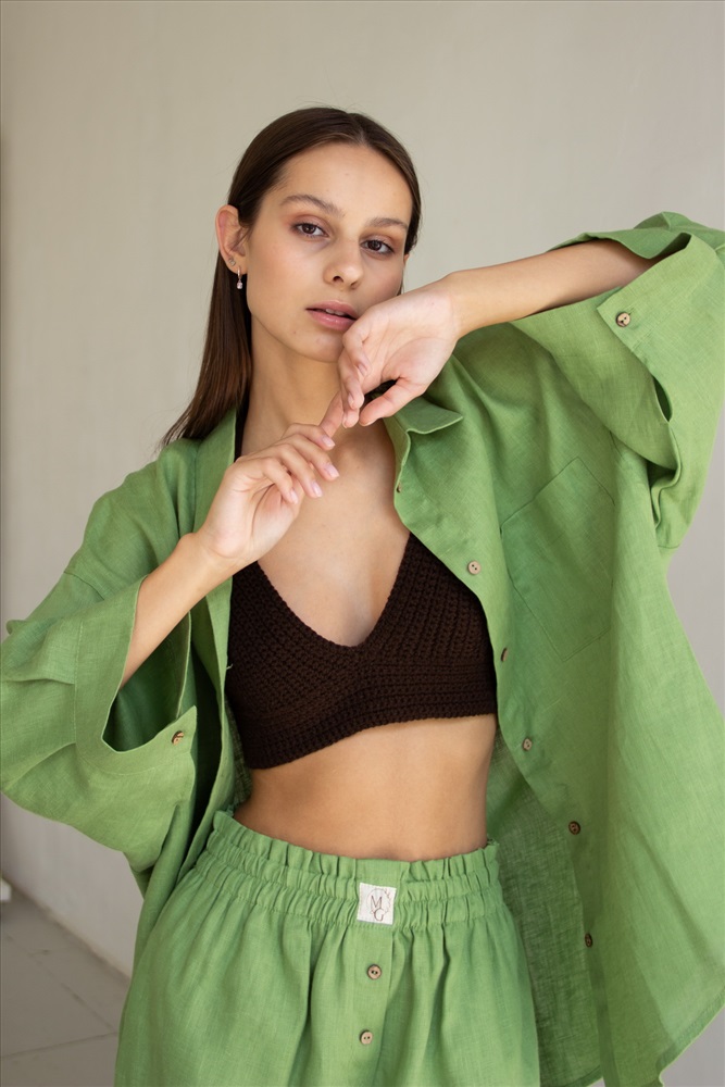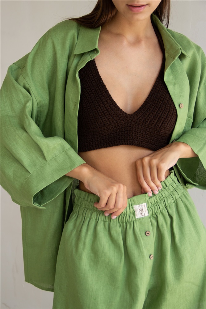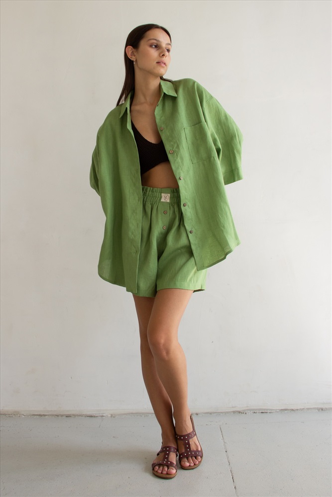 Костюм лён  SET019/05/Салатовый 5 фото
