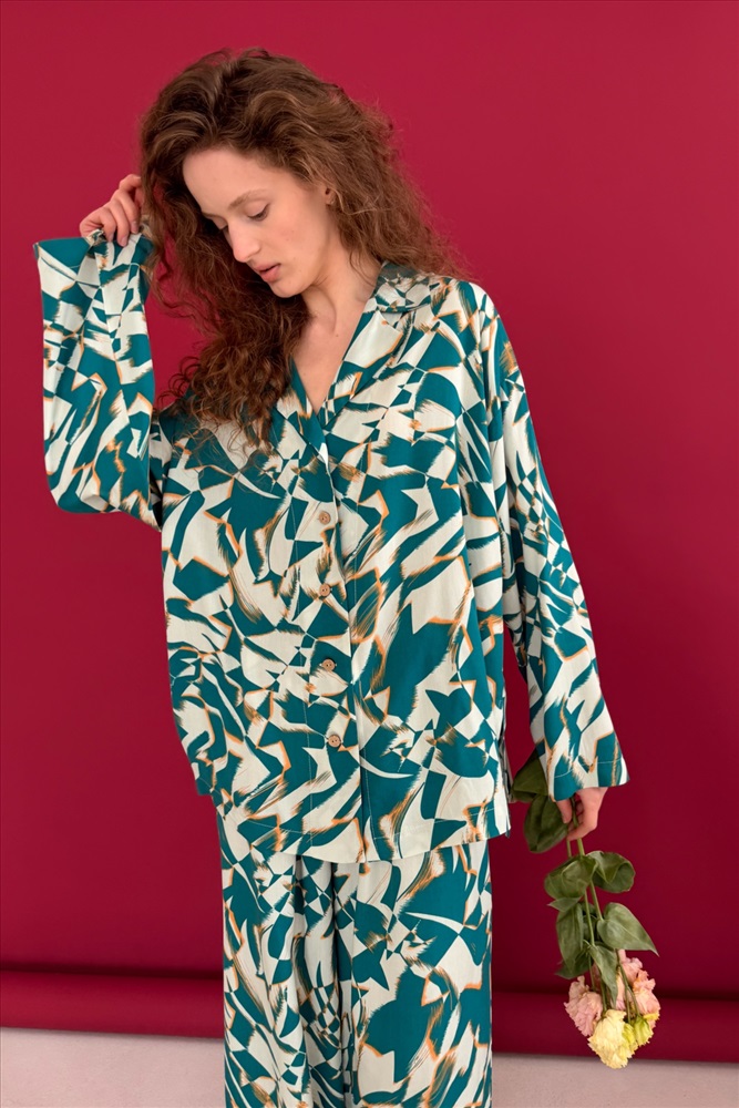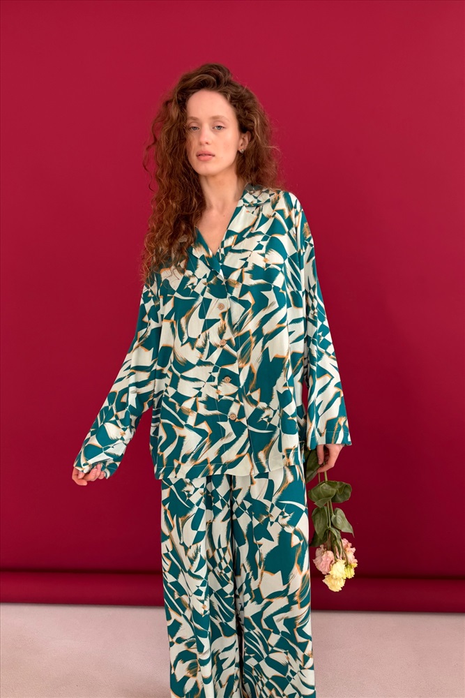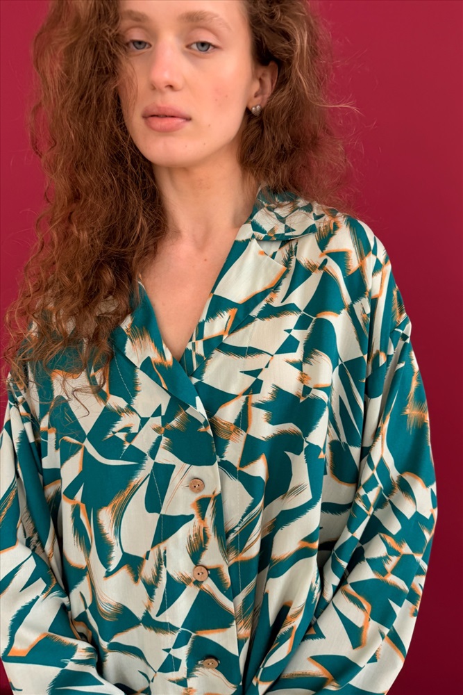 Блузка  СЕТ113/01/Белый, зеленый 8 фото