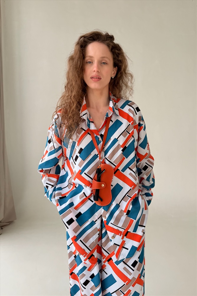 Рубашка  СЕТ001/16/Синий, оранжевый 9 фото