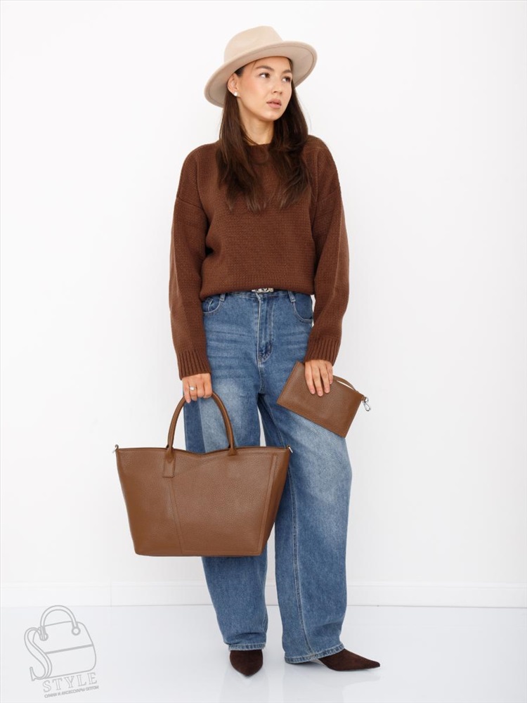 Сумка женская кожаная 1059C brown Polina&Eiterou 7 фото