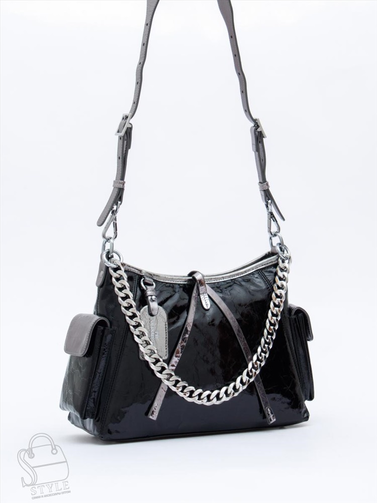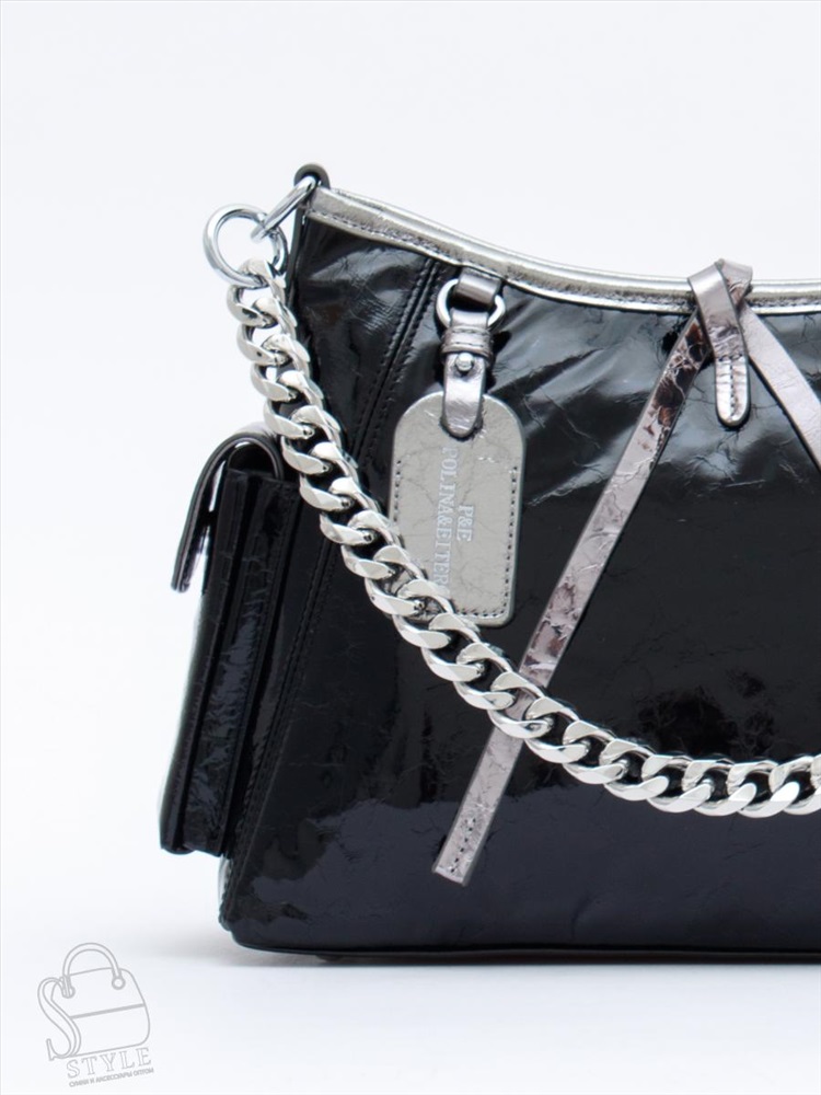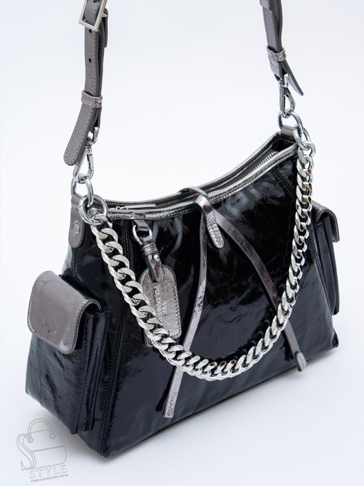 Сумка женская кожаная 2096Y black silver Polina&Eiterou  в Новосибирске 8 фото