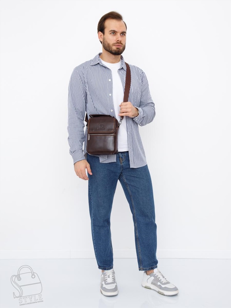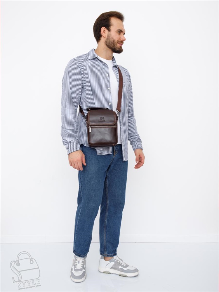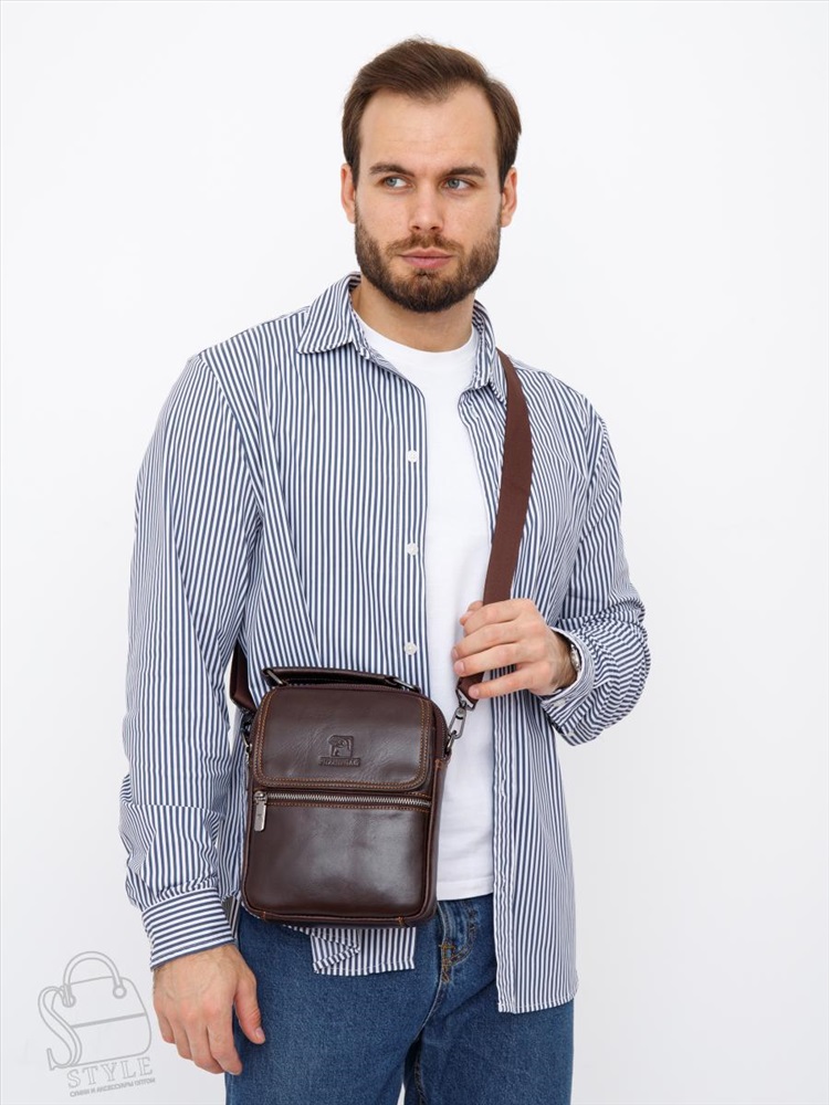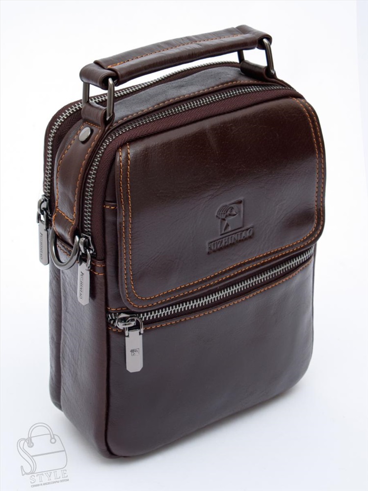 Сумка мужская кожаная 633M brown Fuzhiniao в Новосибирске 8 фото