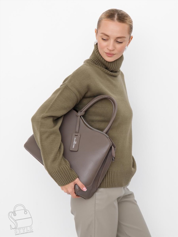 Сумка женская кожаная 5555PEF cocoa Polina&Eiterou 7 фото