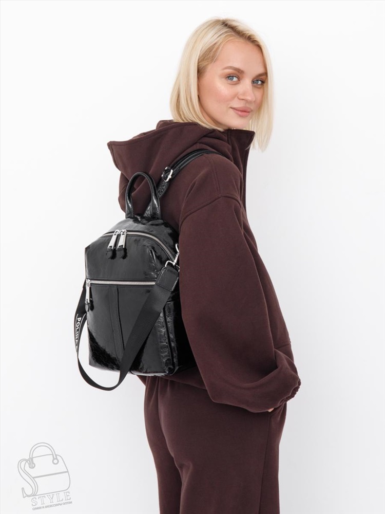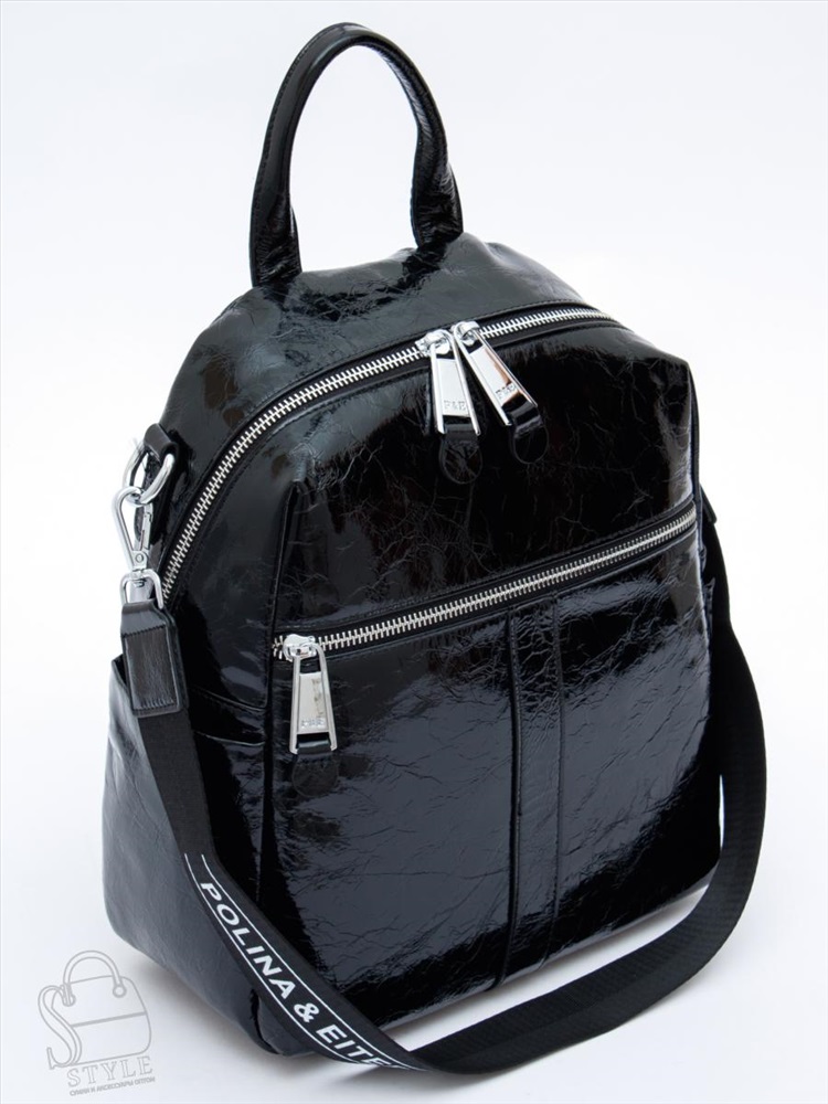 Рюкзак женский кожаный 21021 black Polina&Eiterou