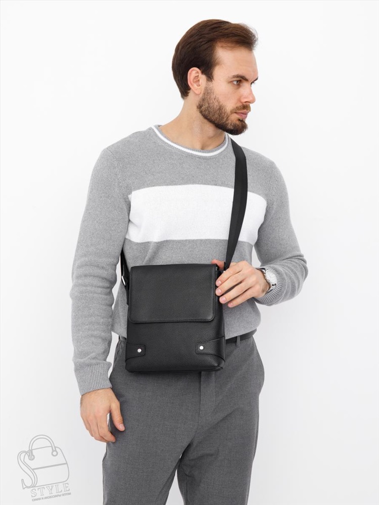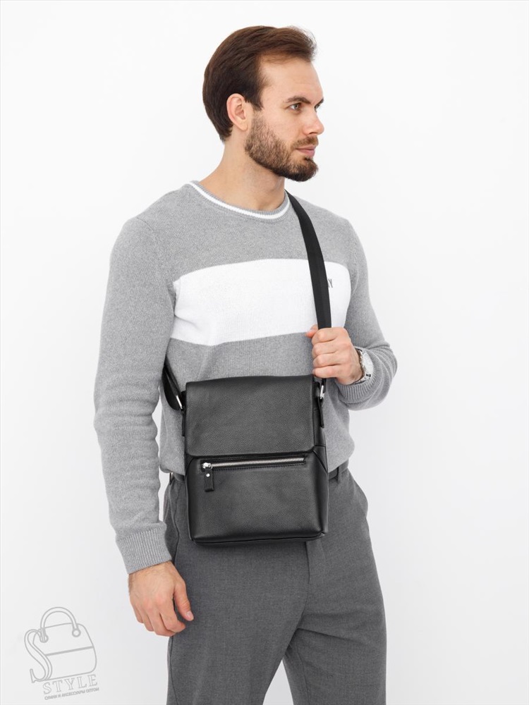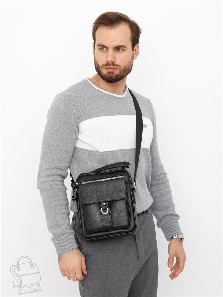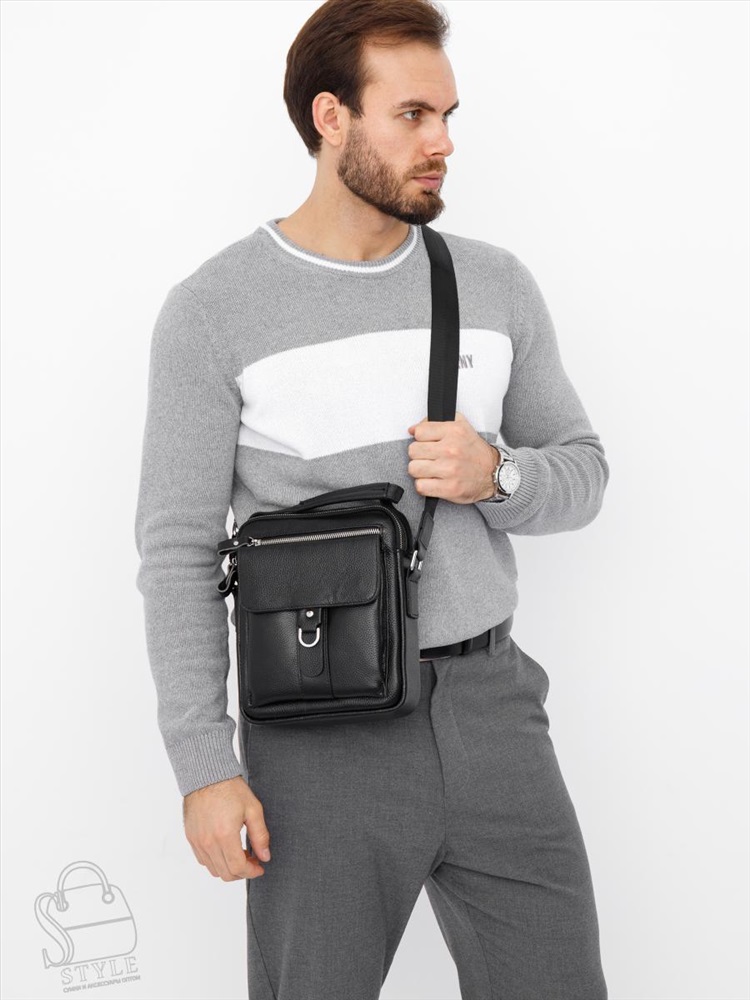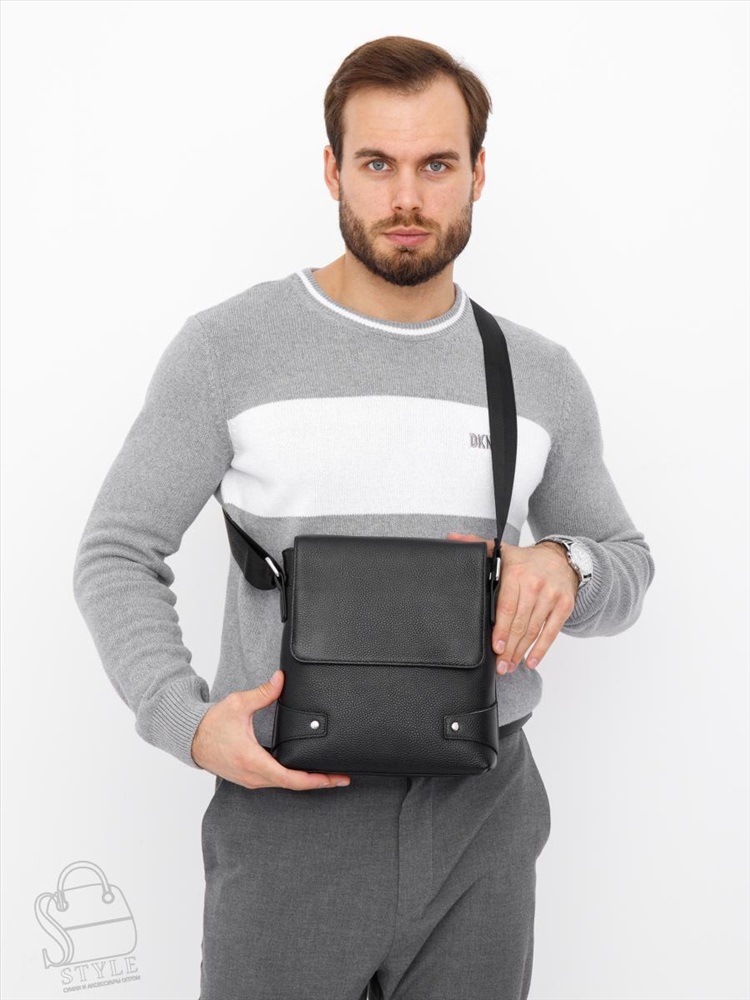 Сумка мужская кожаная 013H black Heanbag в Новосибирске