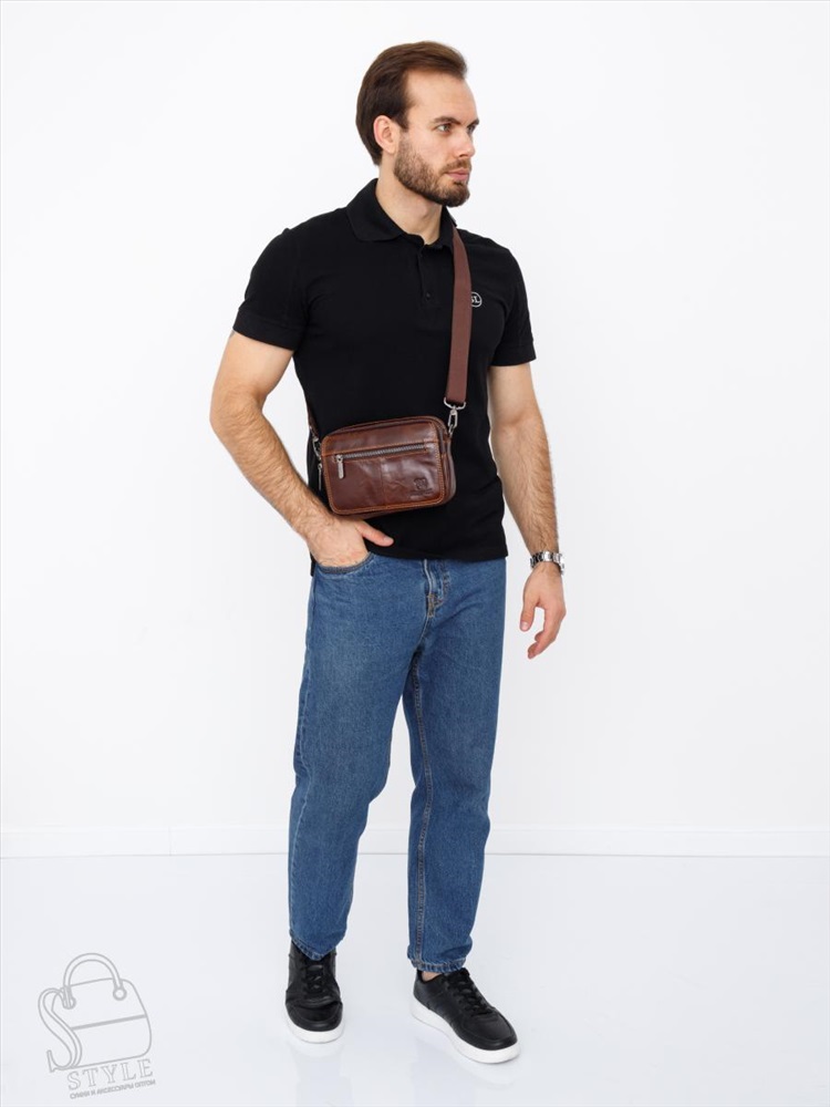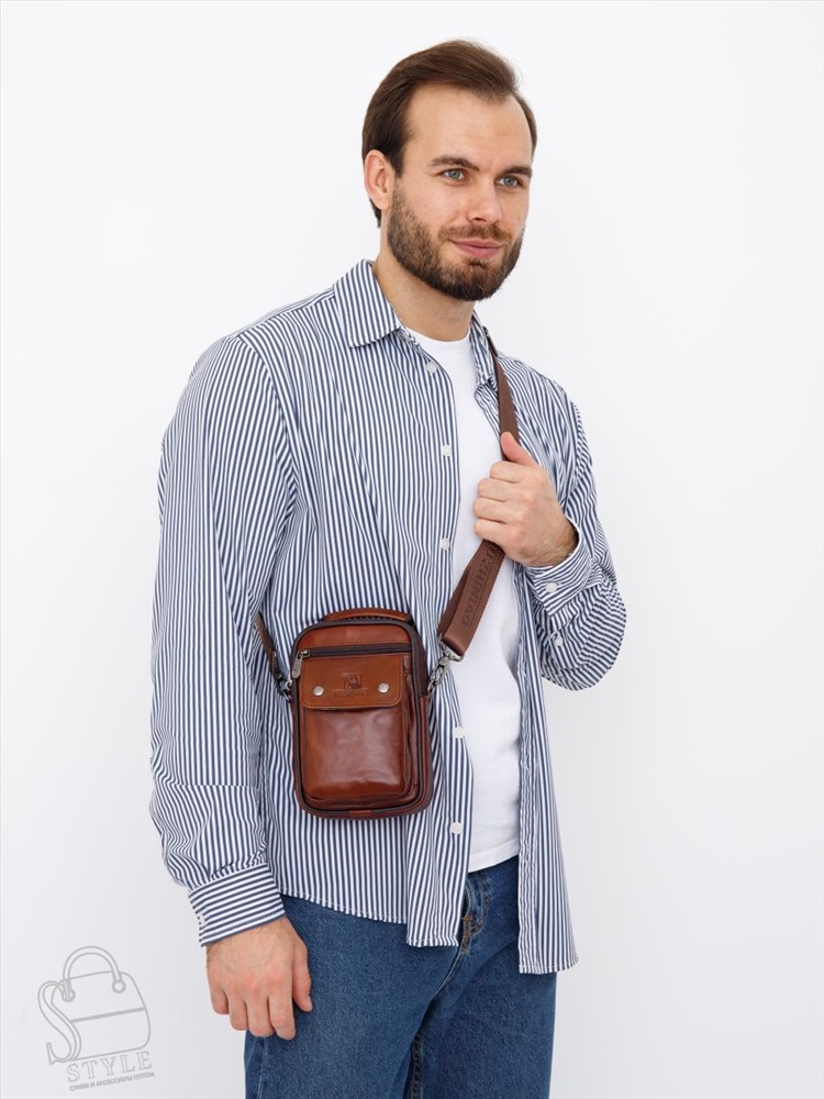 Сумка мужская кожаная 8613S brown Fuzhiniao