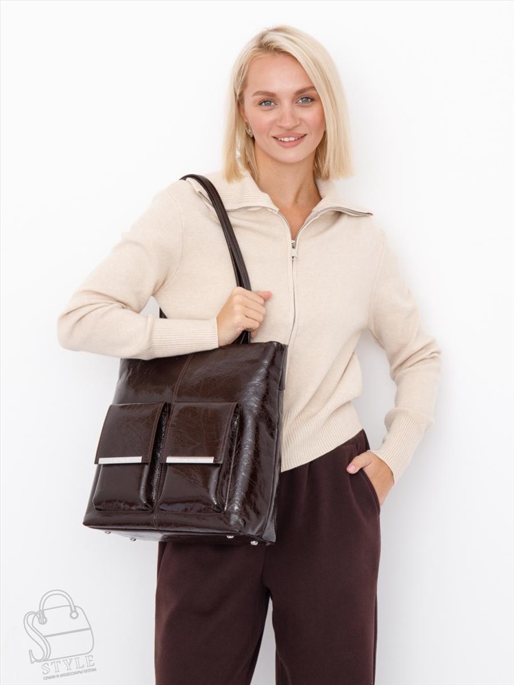 Сумка женская кожаная 1007M brown Polina&Eiterou