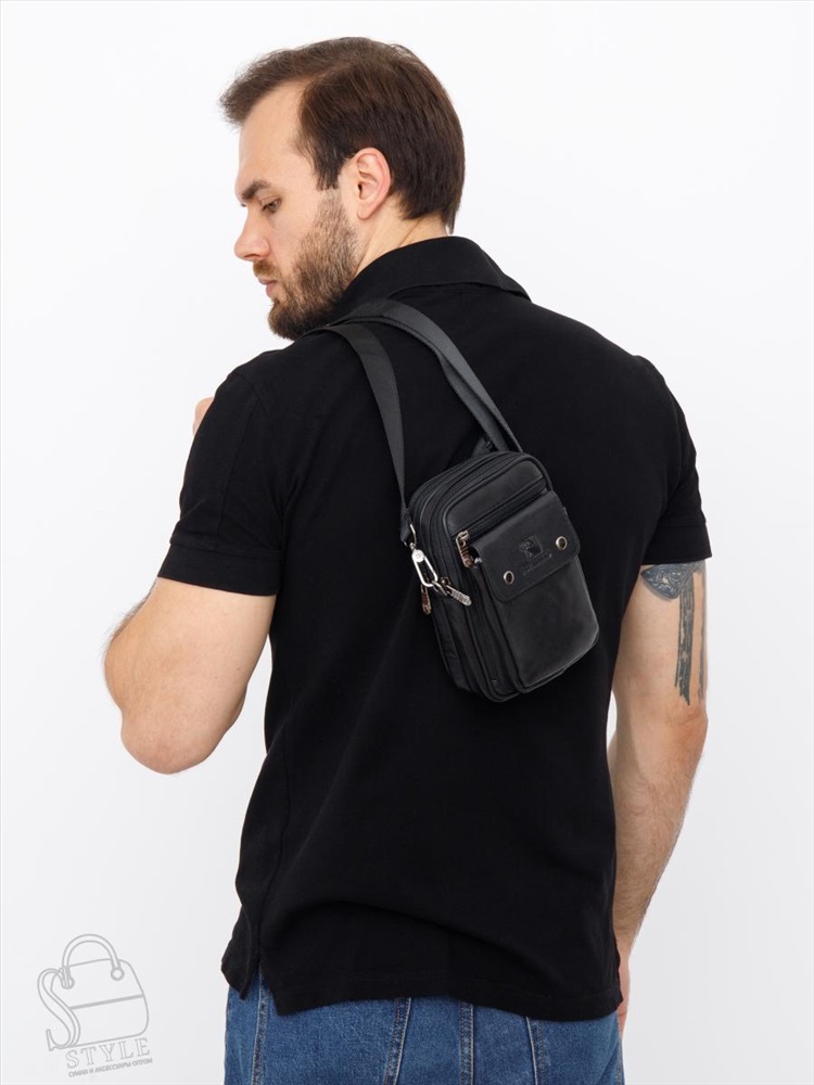 Сумка мужская кожаная 3131 black Fuzhiniao