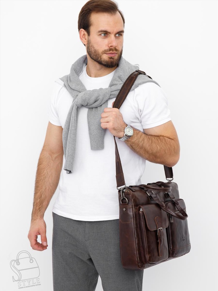 Сумка мужская кожаная 8615S brown Fuxhiniao в Новосибирске
