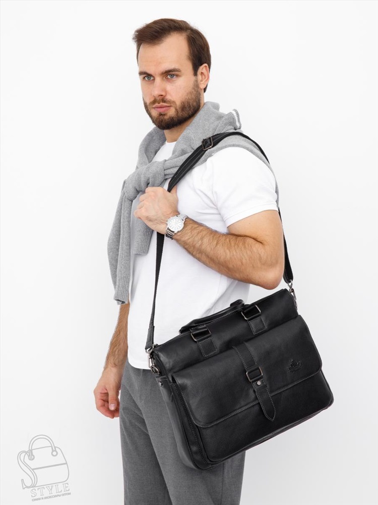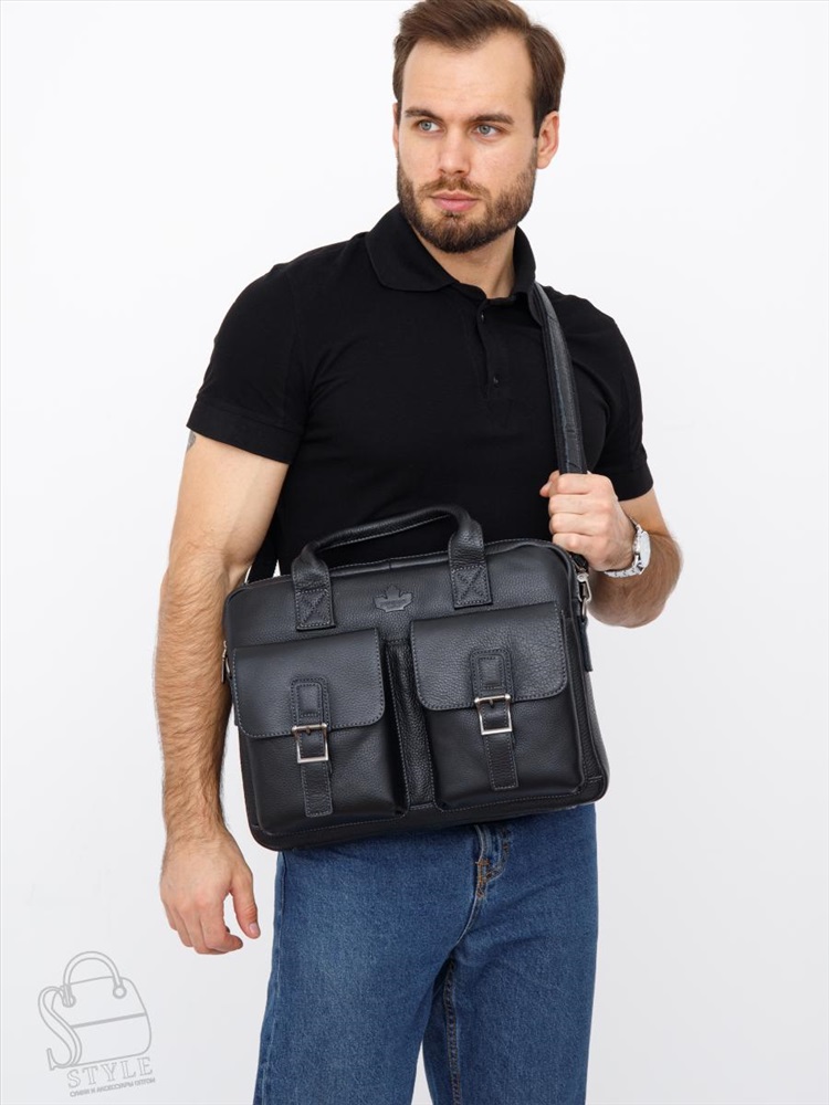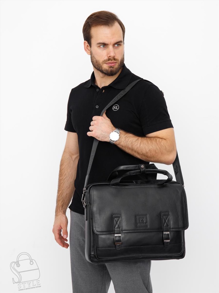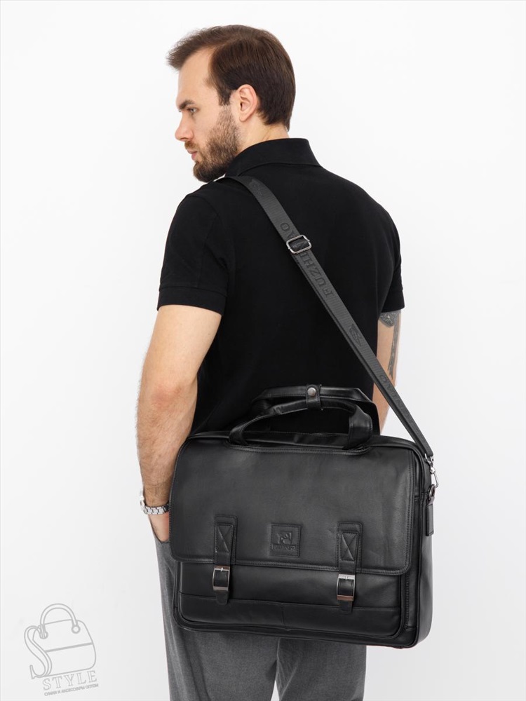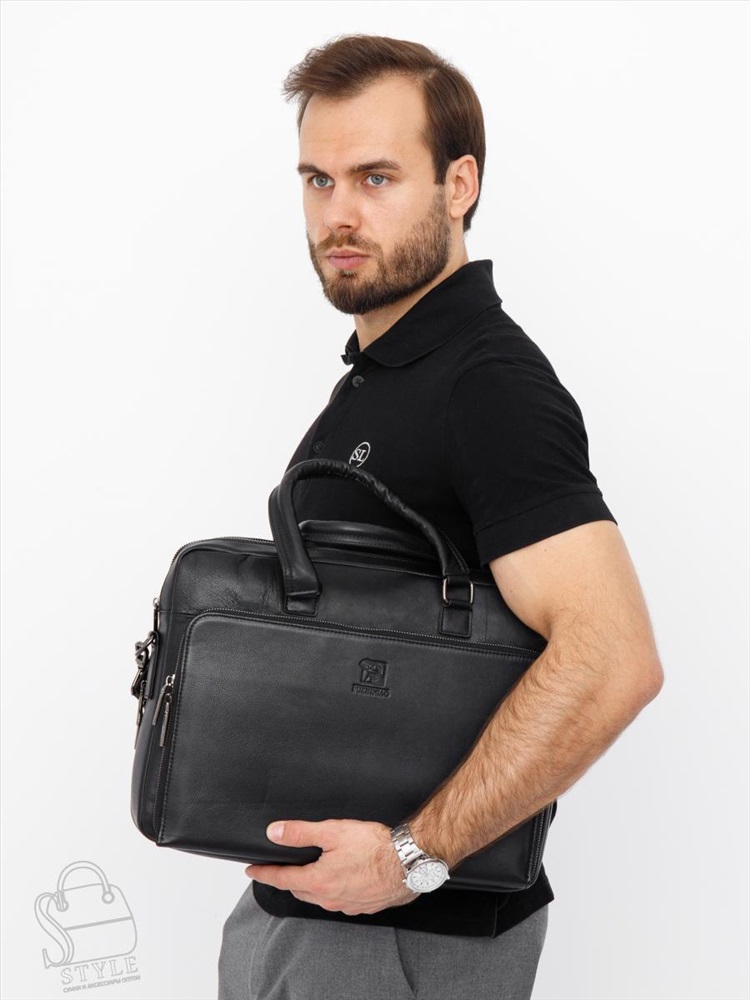 Портфель мужской кожаный 0993Z black Zinimsk в Новосибирске