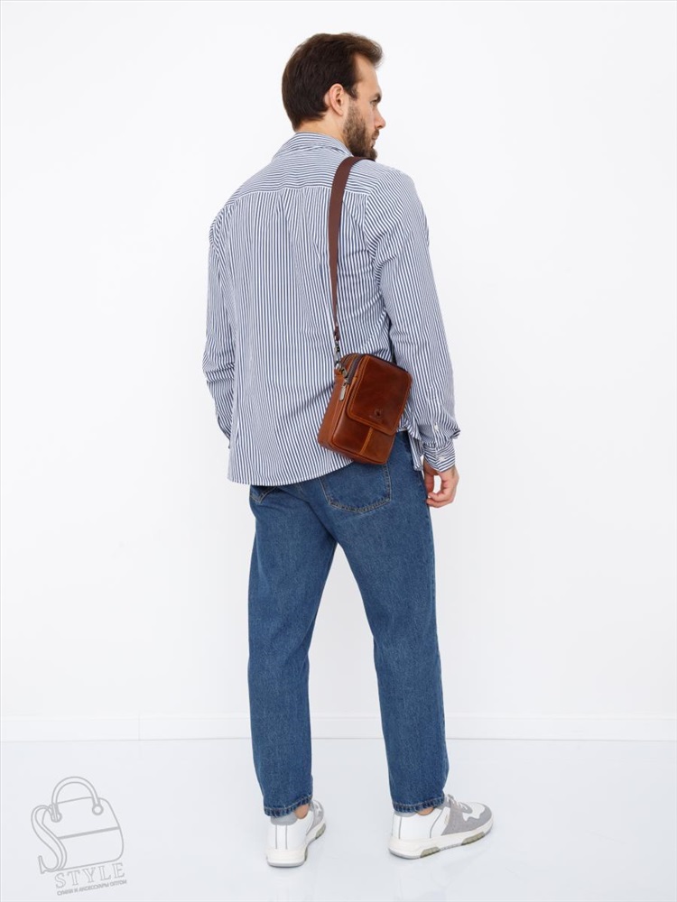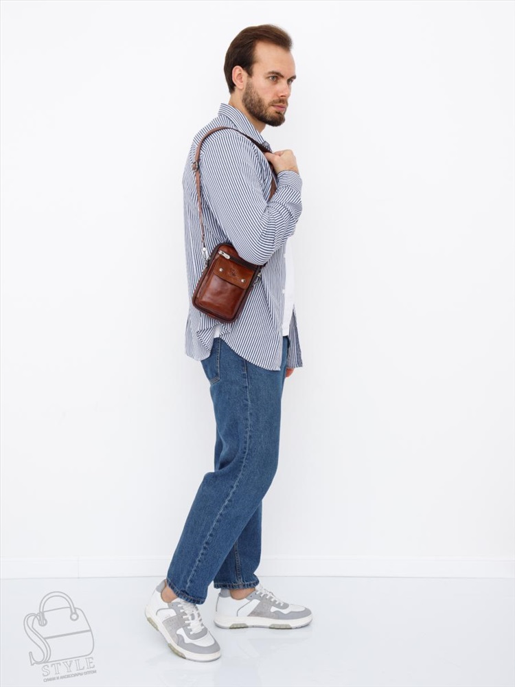 Сумка мужская кожаная 3131 brown Fuzhiniao в Новосибирске