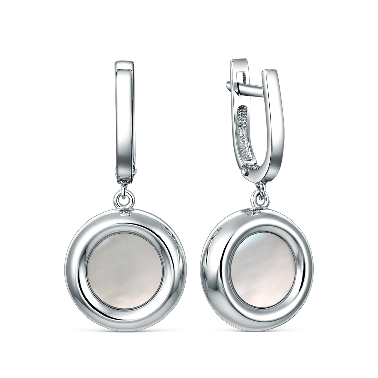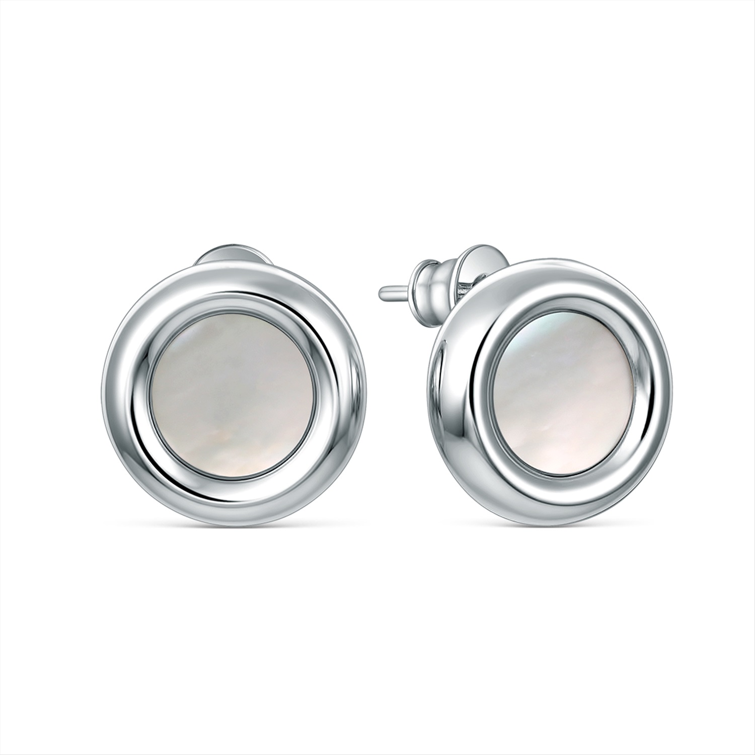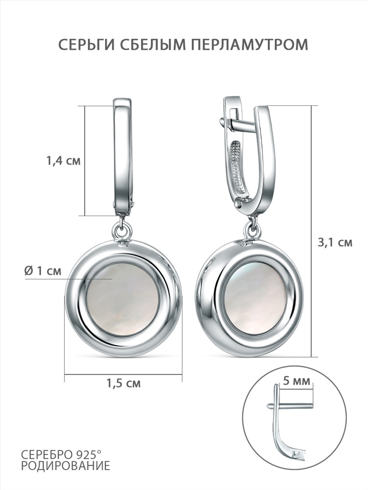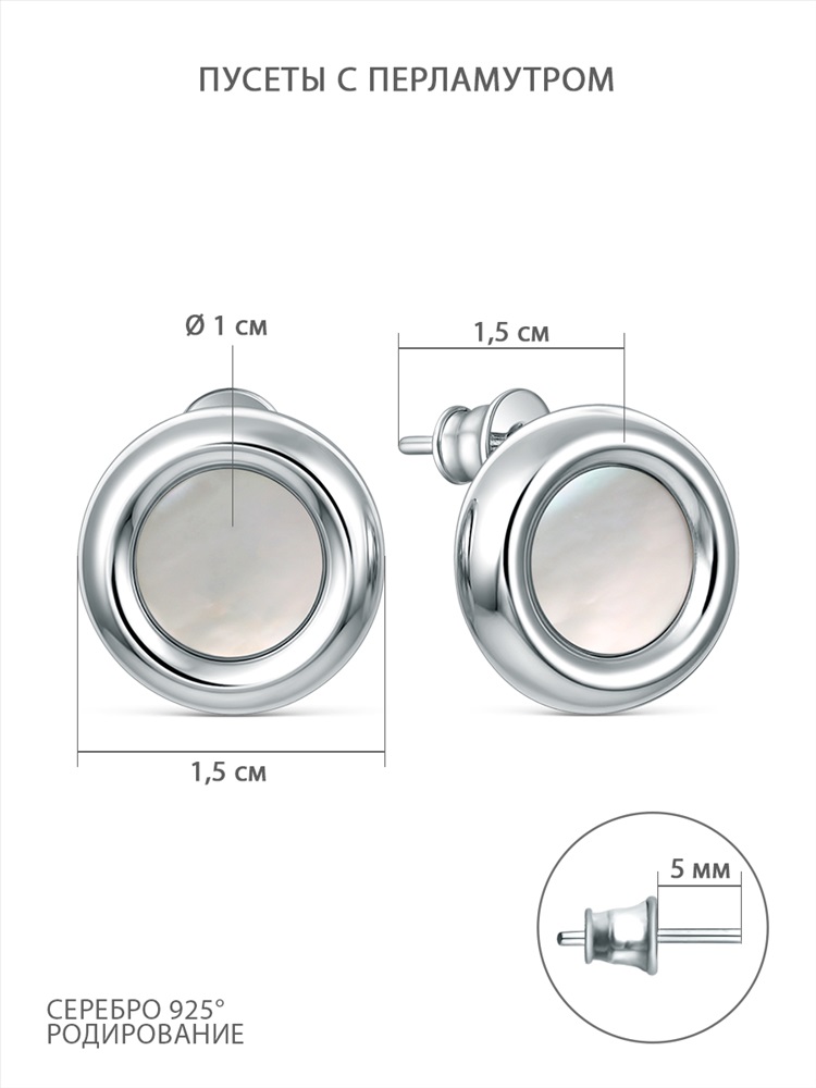 Серьги-пусеты из серебра с белым перламутром родированные 221-10-288-1р 5 фото