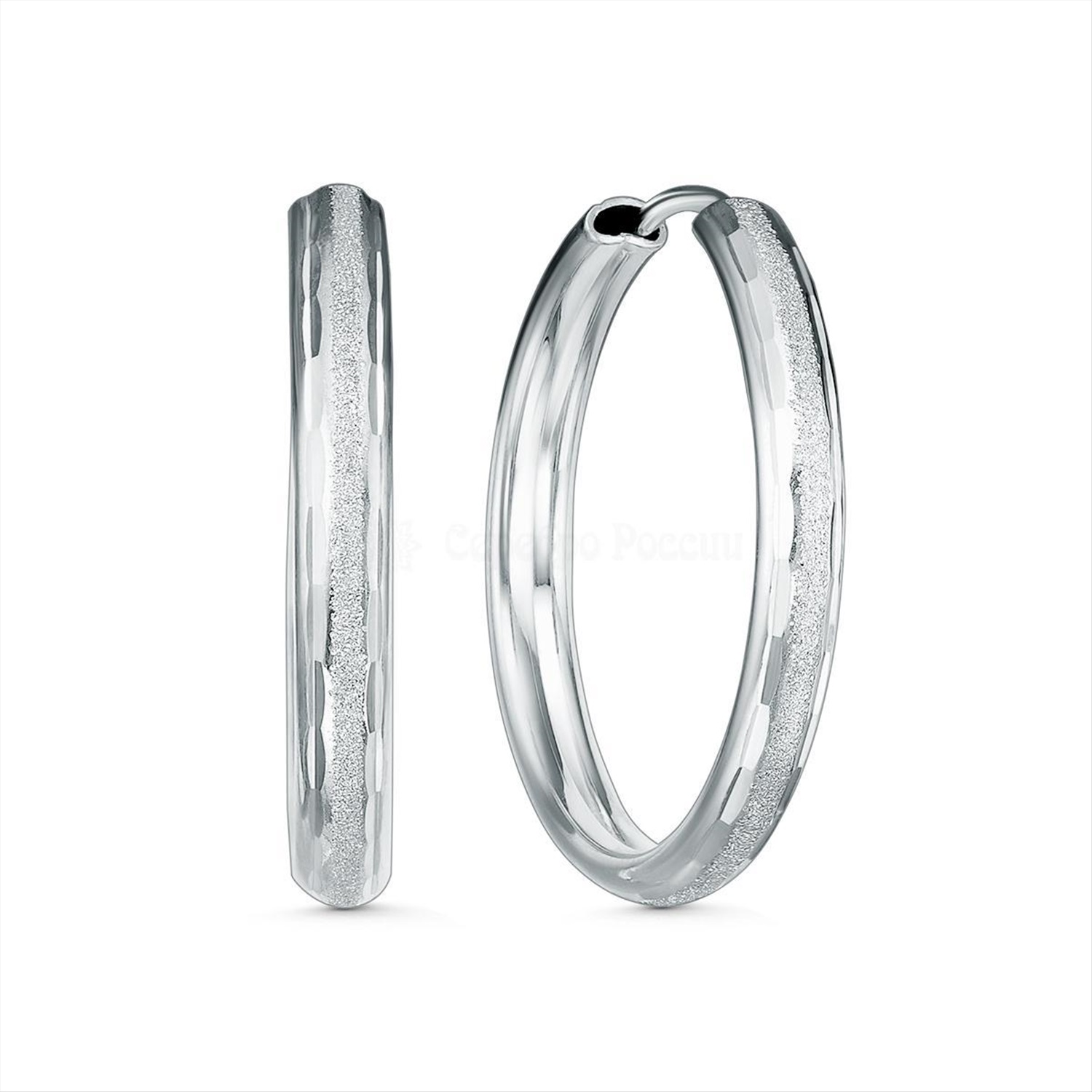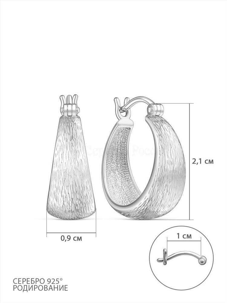 Серьги-конго женские из серебра родированные - диаметр 2 см, толщина 3 мм 925 пробы 02-12-7020