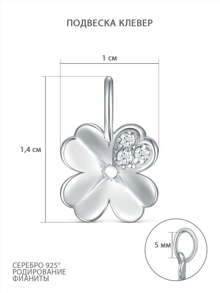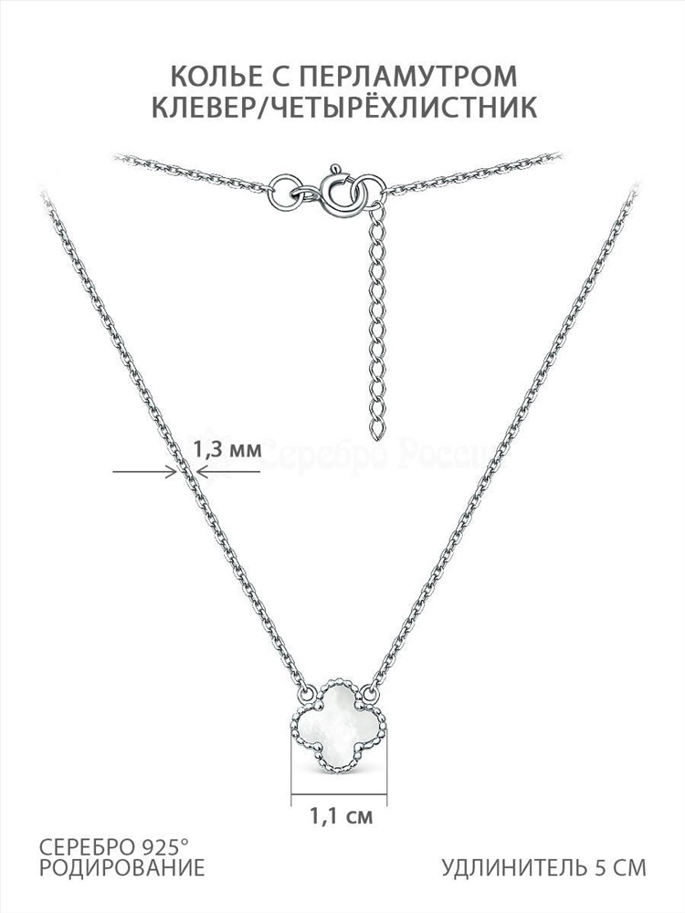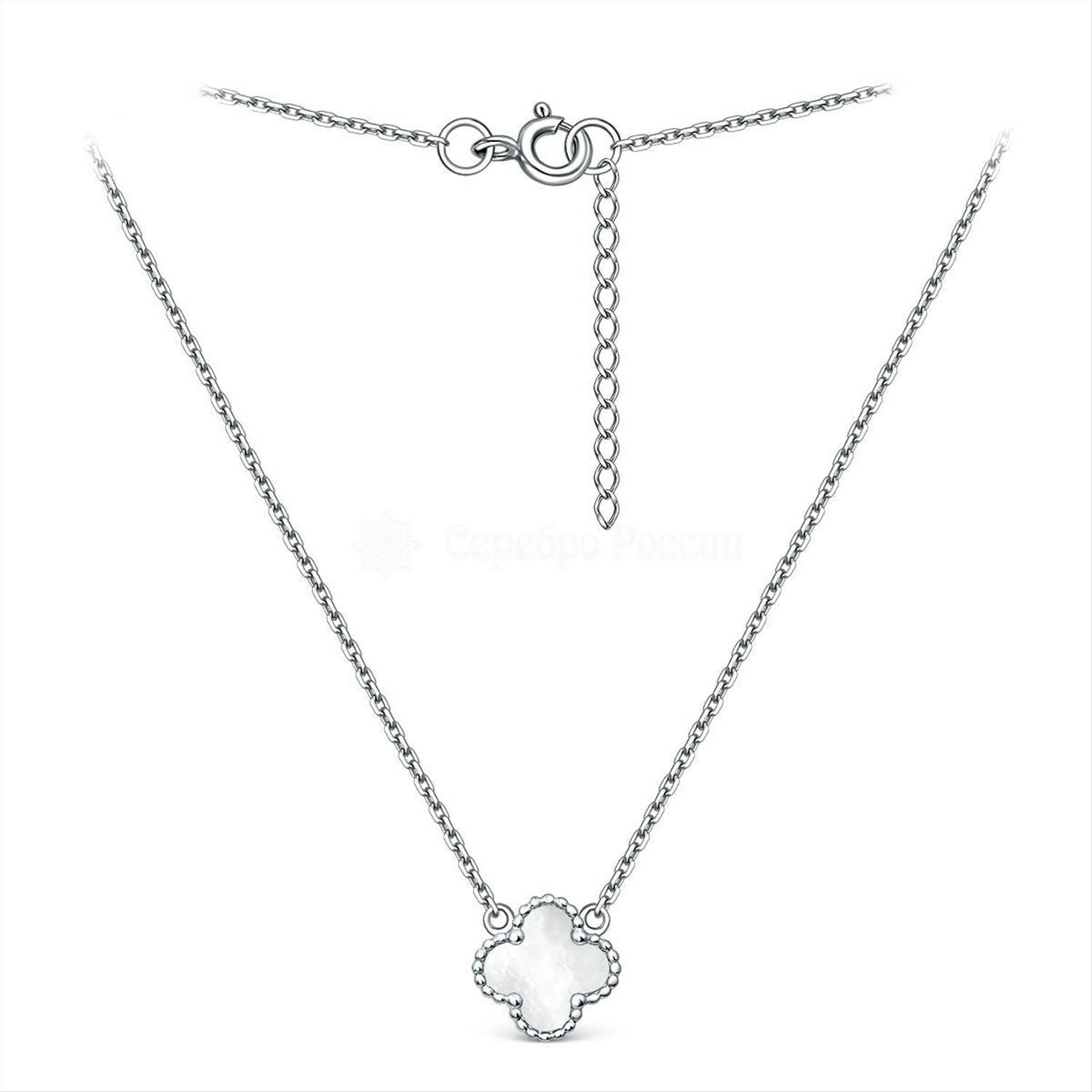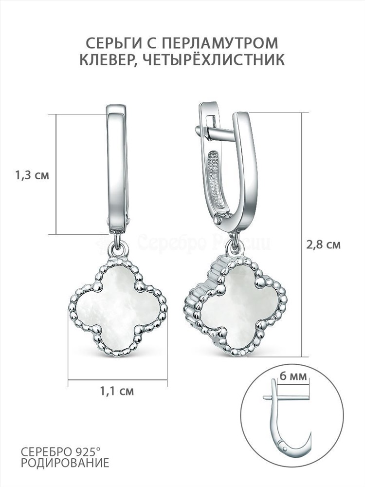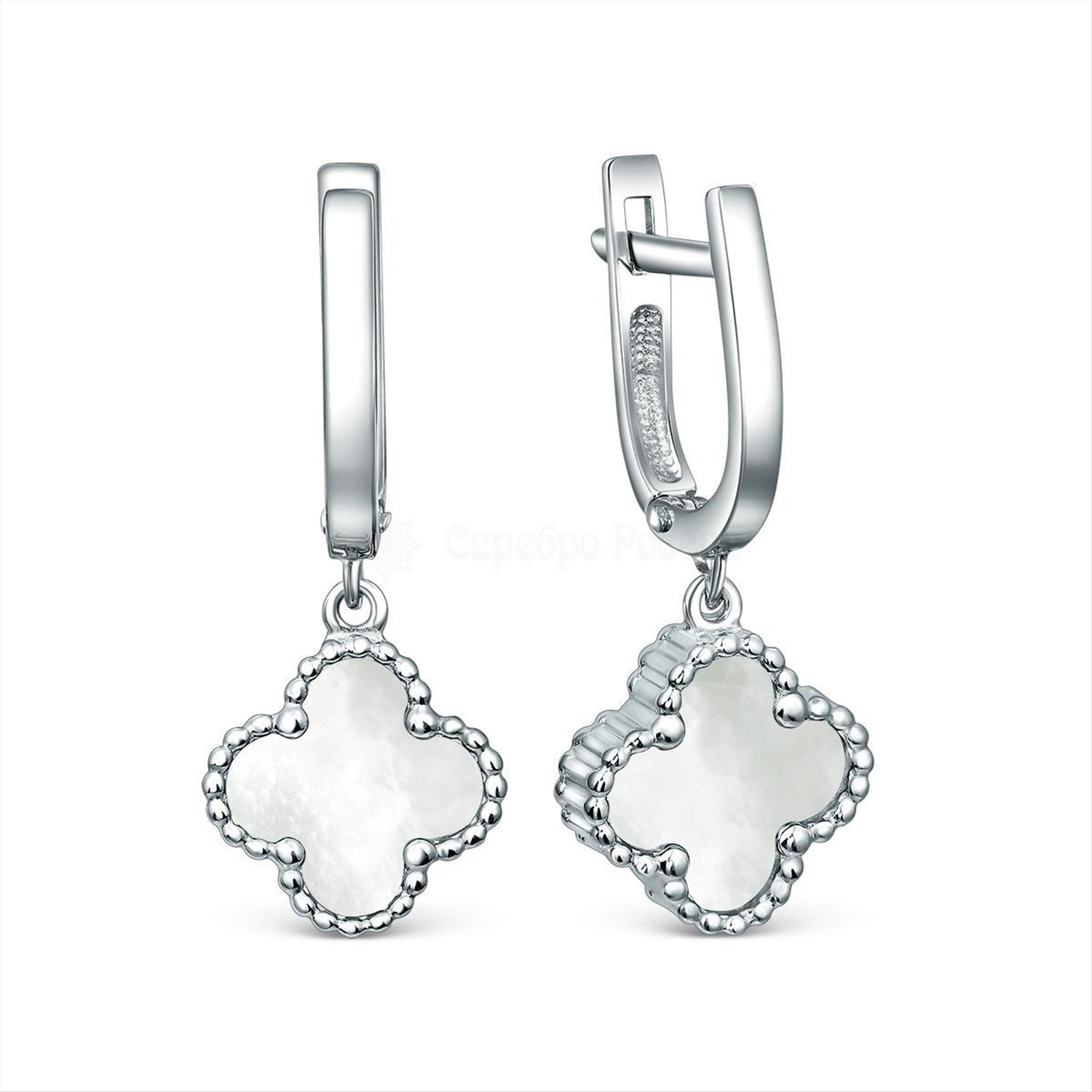 Серьги из серебра с перламутром родированные - Клевер, четырёхлистник 925 пробы 421-10-054-1р 4 фото