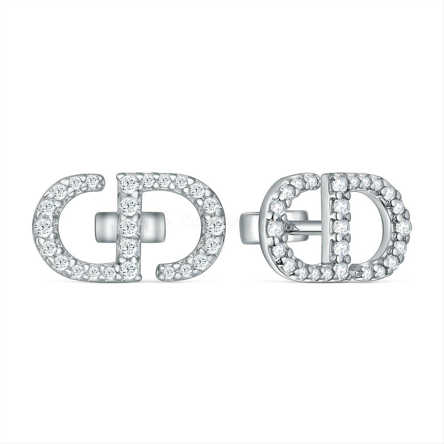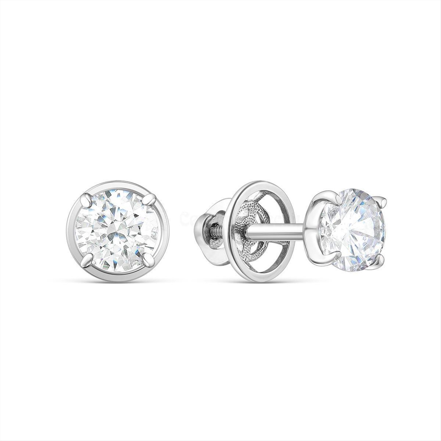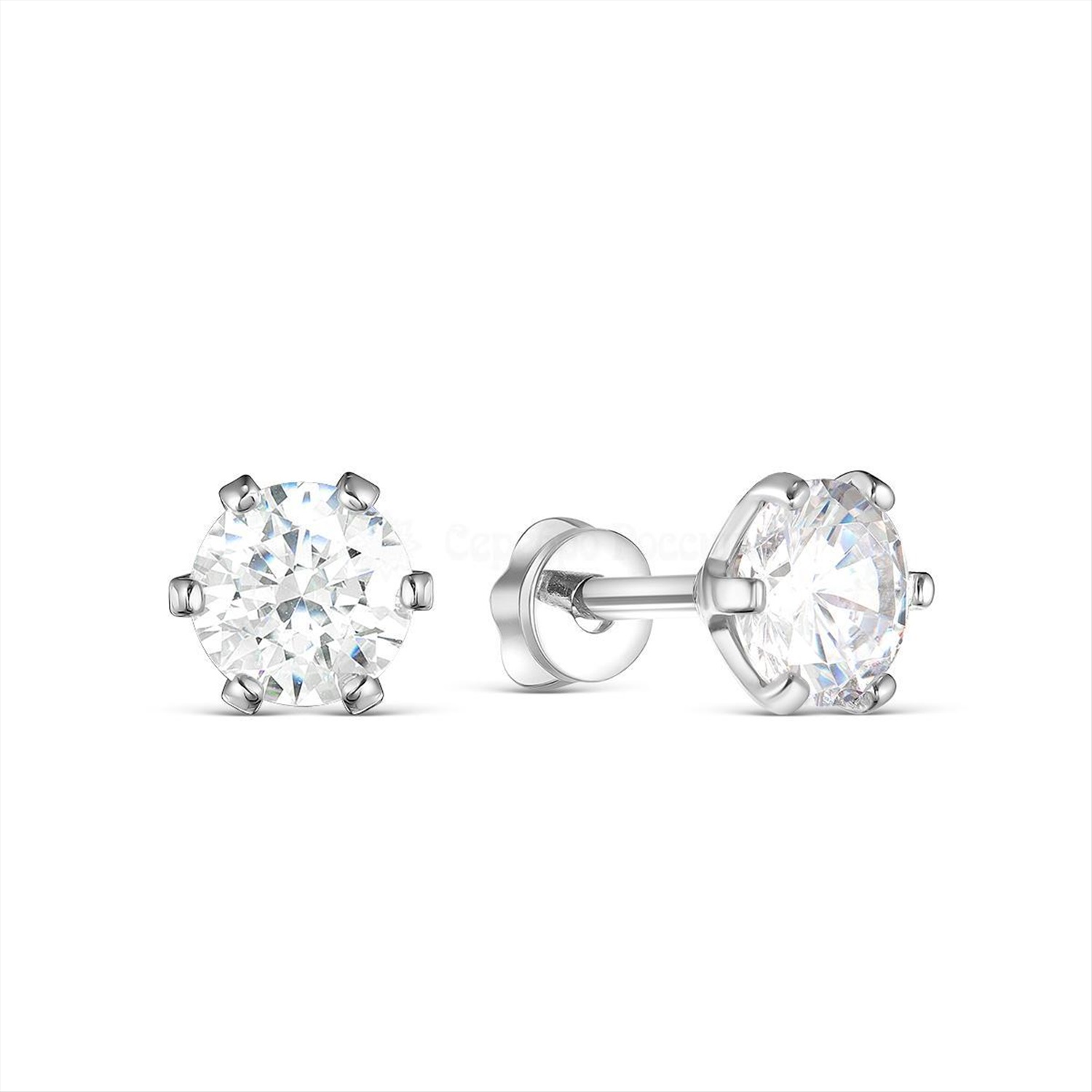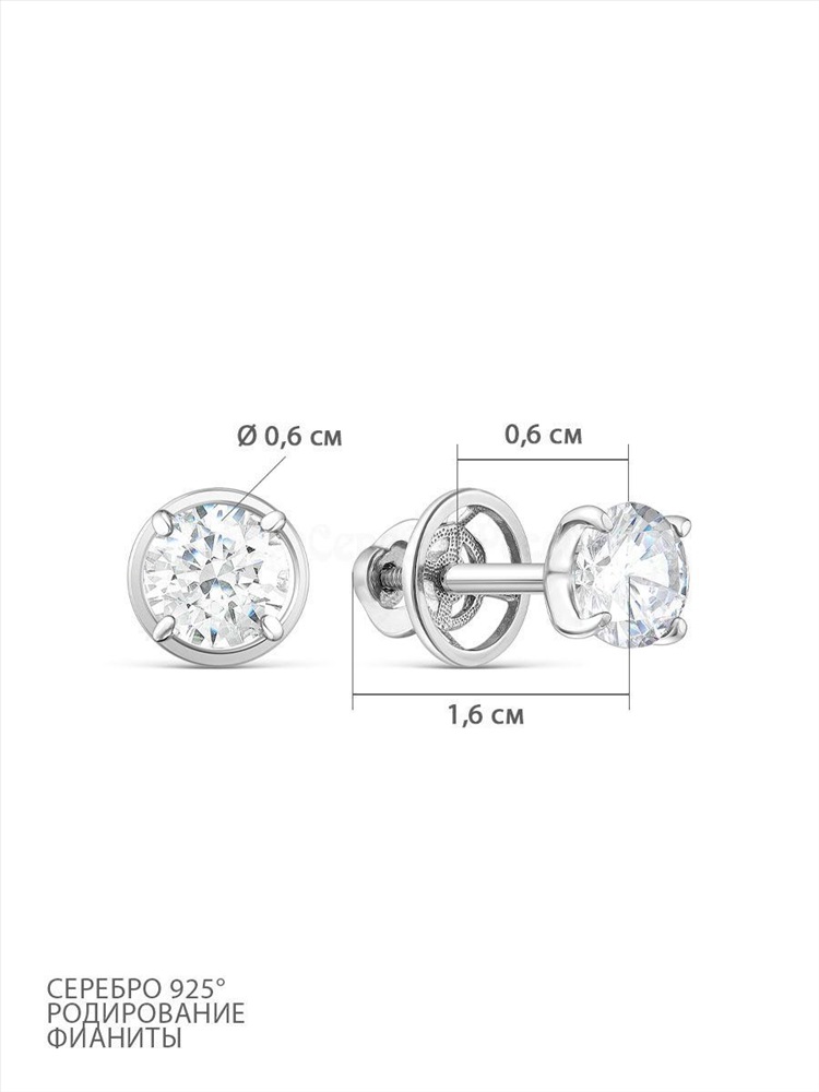Серьги-пусеты из серебра с фианитами родированные 2-019р200 2 фото