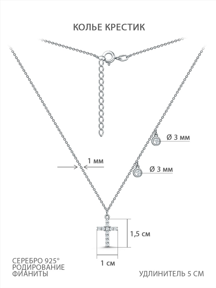 Колье из серебра с фианитами родированное 925 пробы 862803040Ф1 2 фото