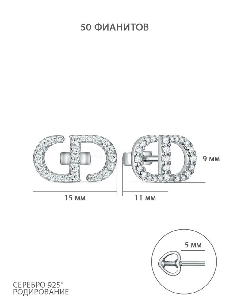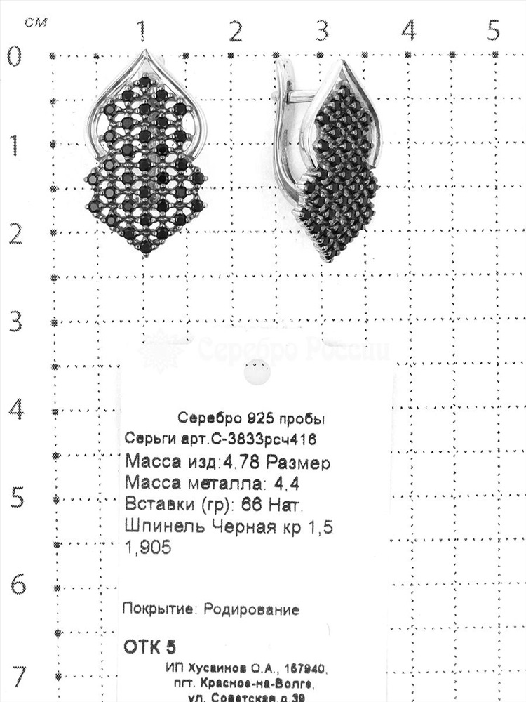 Серьги из серебра родированные 925 пробы с50143 8 фото