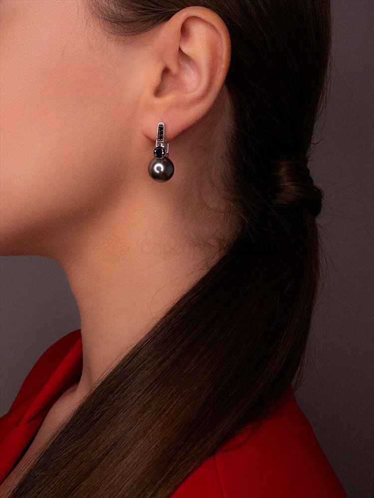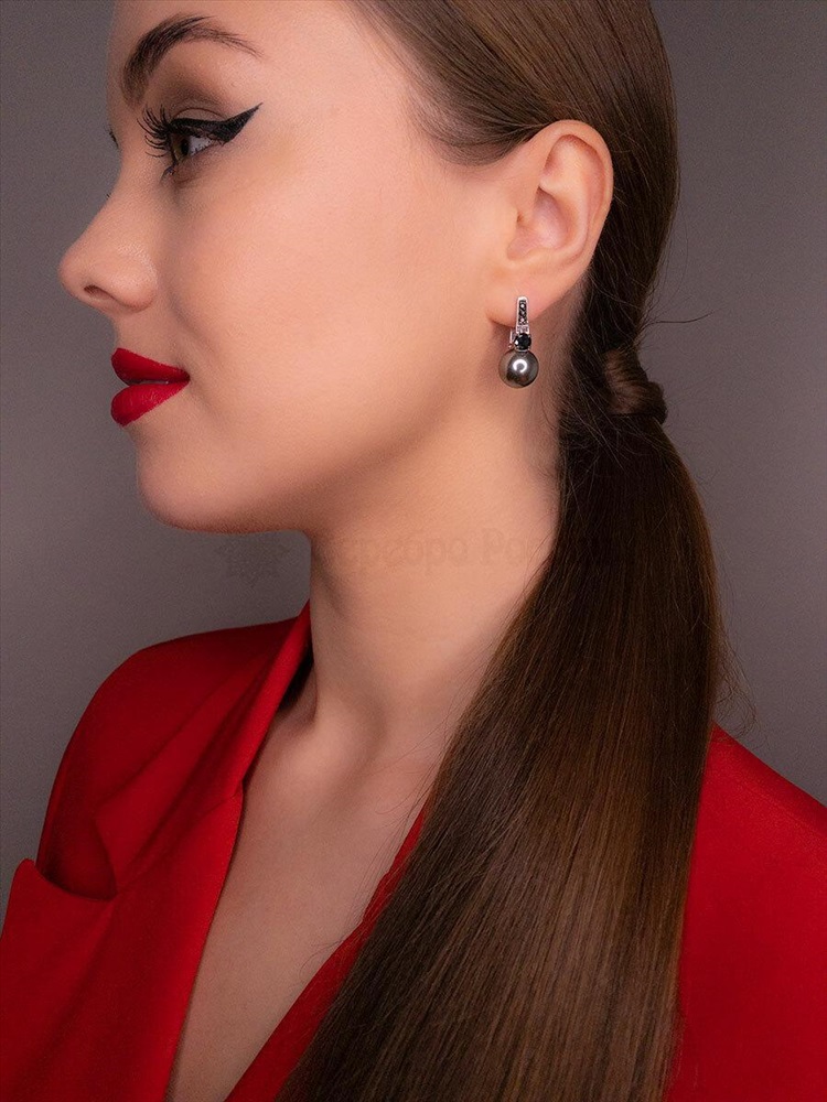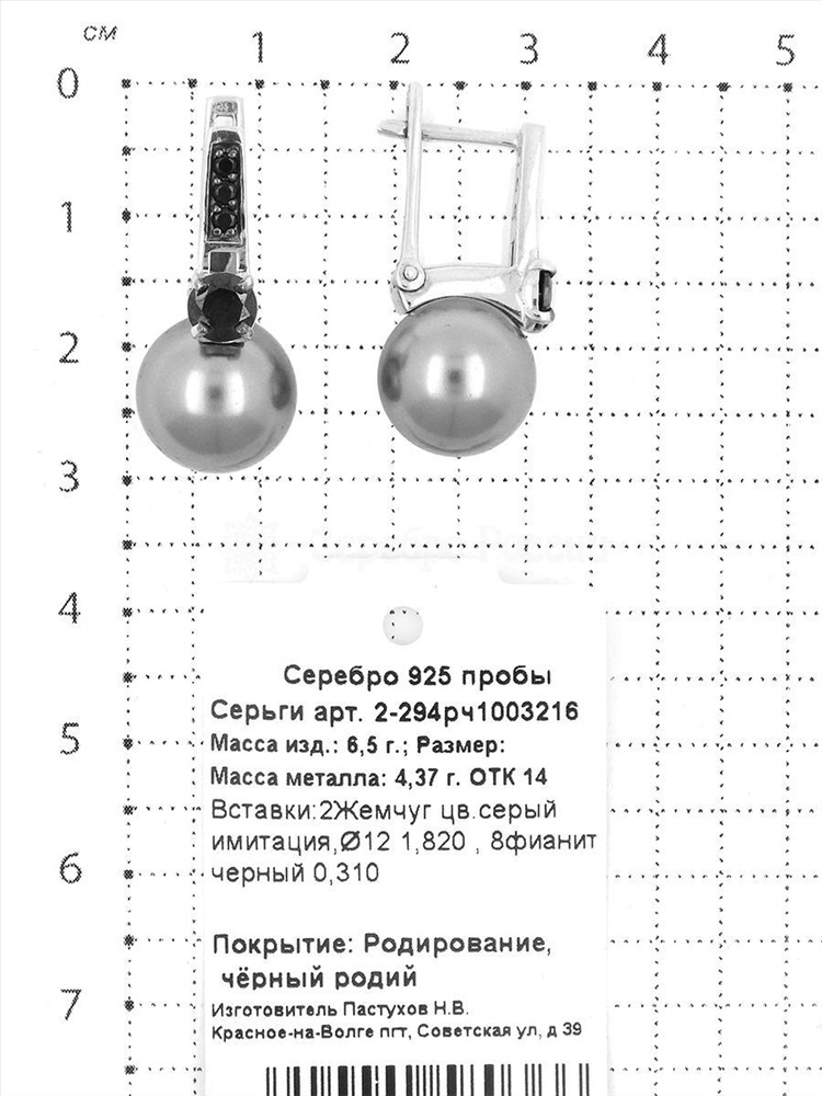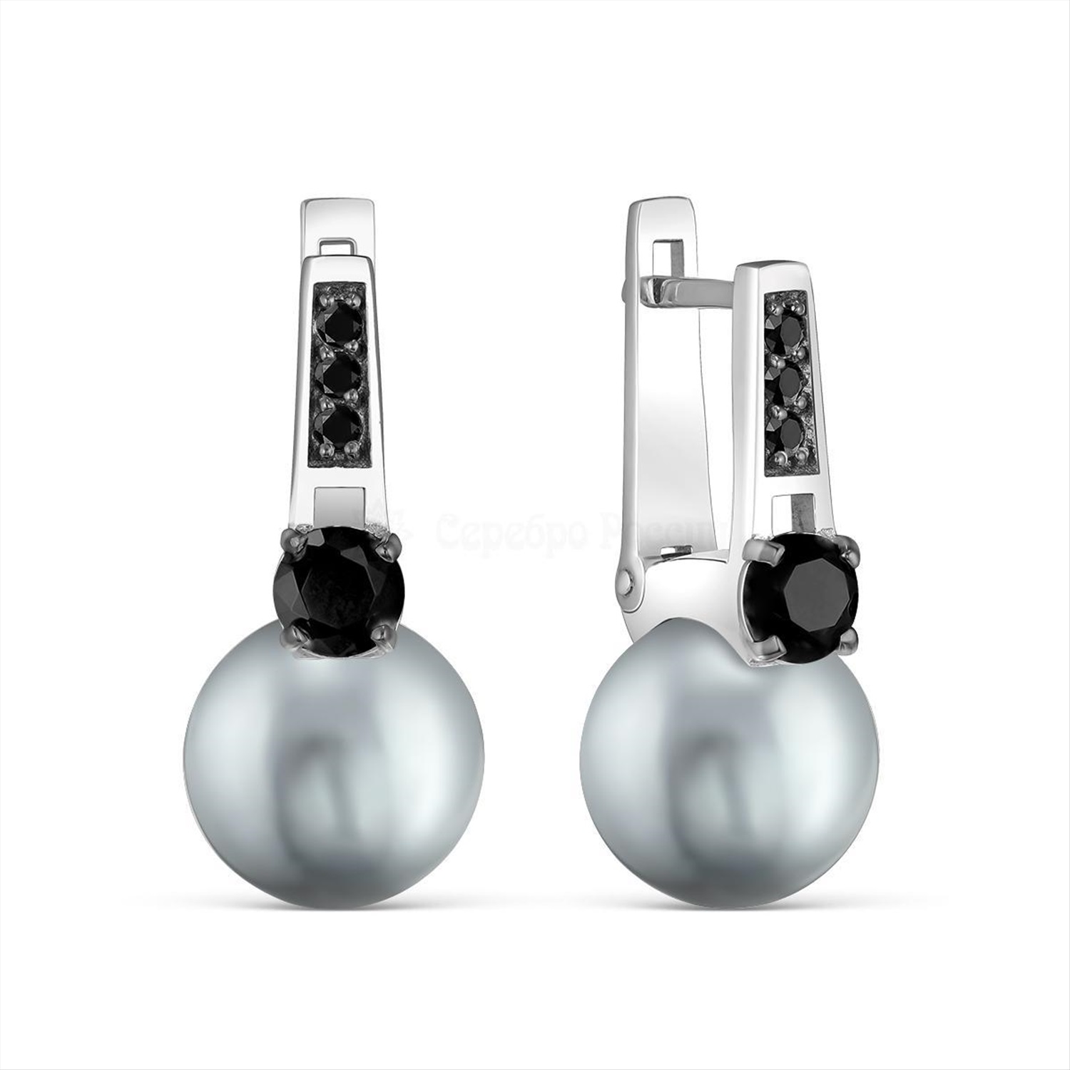 Серьги из серебра с жемчугом и фианитами родированные 925 пробы 2-294рч1003216 4 фото
