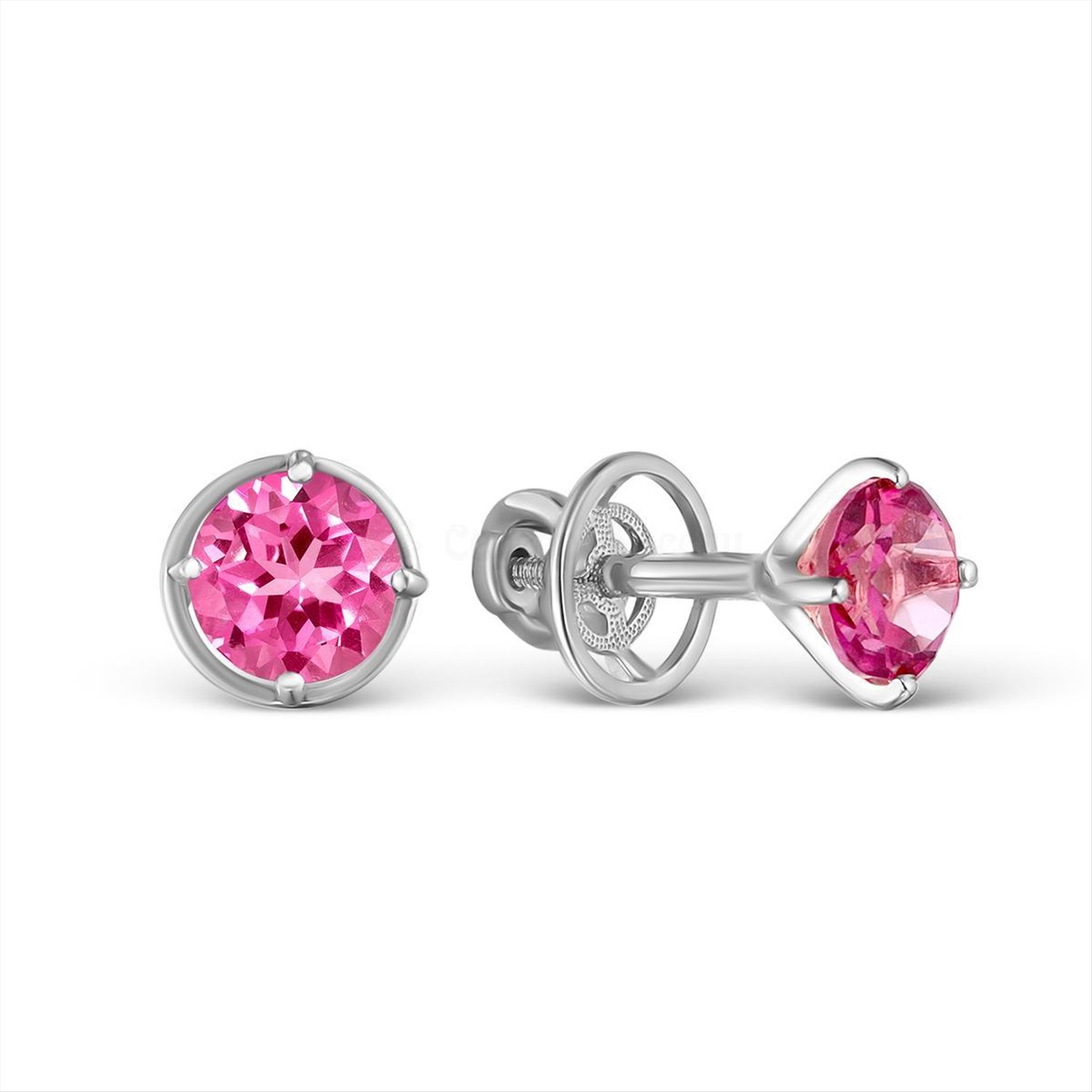 Серьги из серебра с нат.розовым топазом родированные 925 пробы С-3694рс421