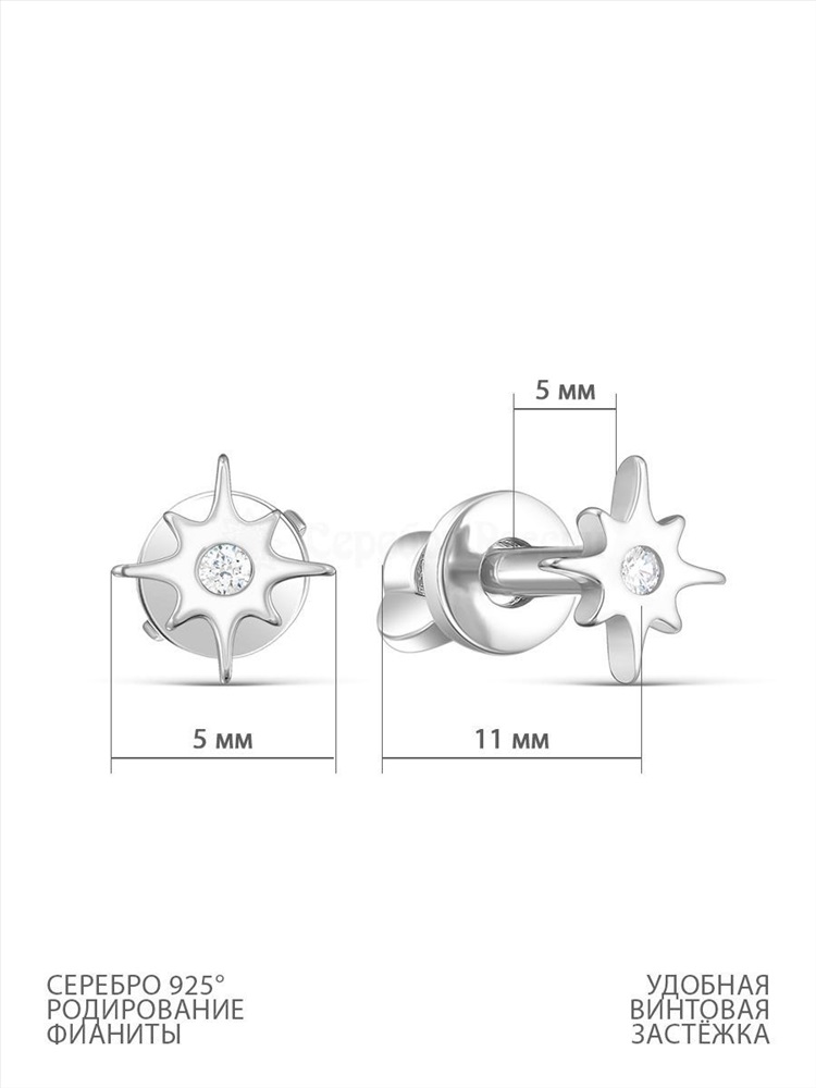 Серьги-пусеты из серебра родированные - Звёзды 925 пробы 12-1400