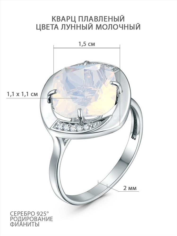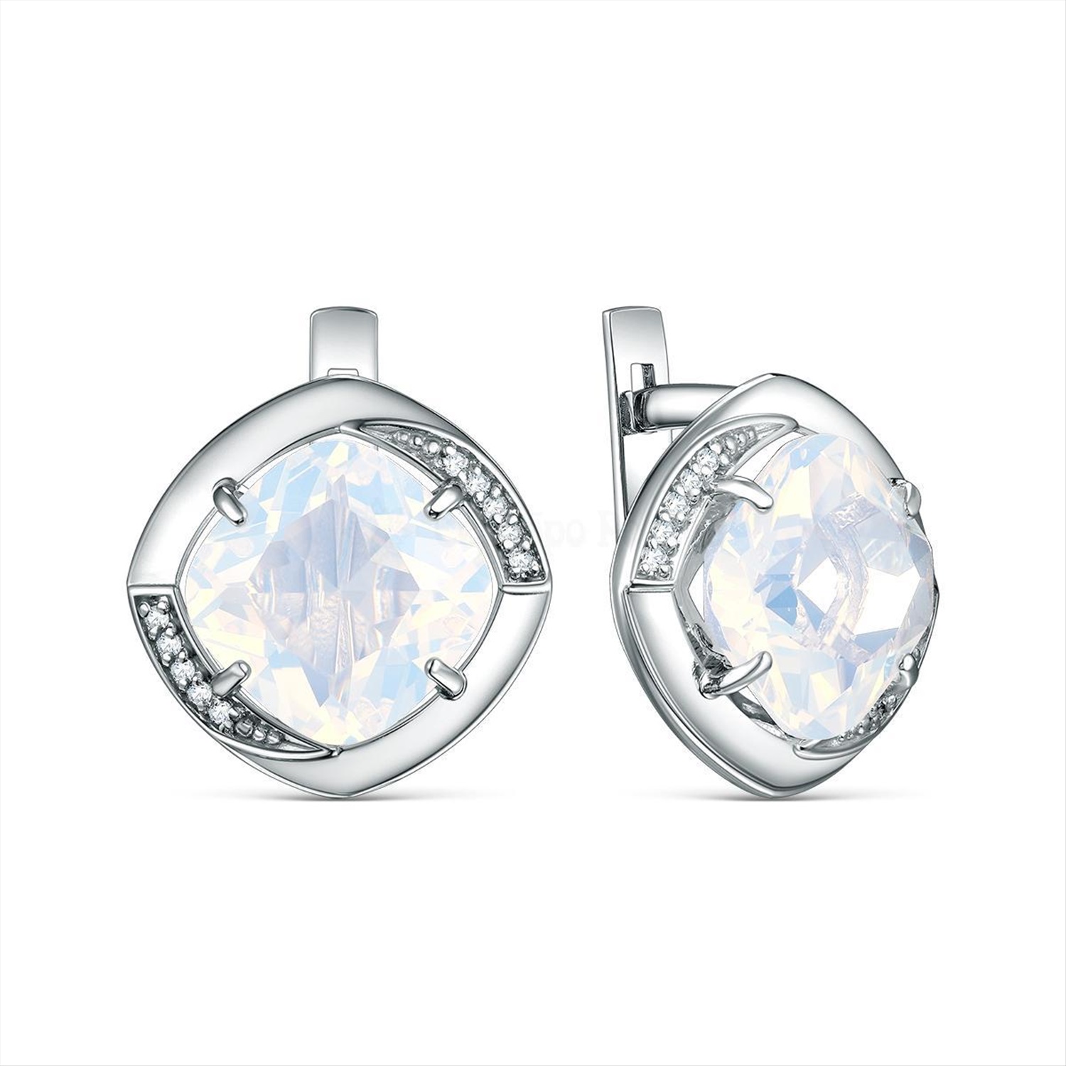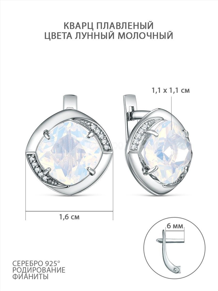 Серьги из серебра с плавленым кварцем цвета лунный молочный и фианитами родированные 925 пробы 00163249РС 4 фото