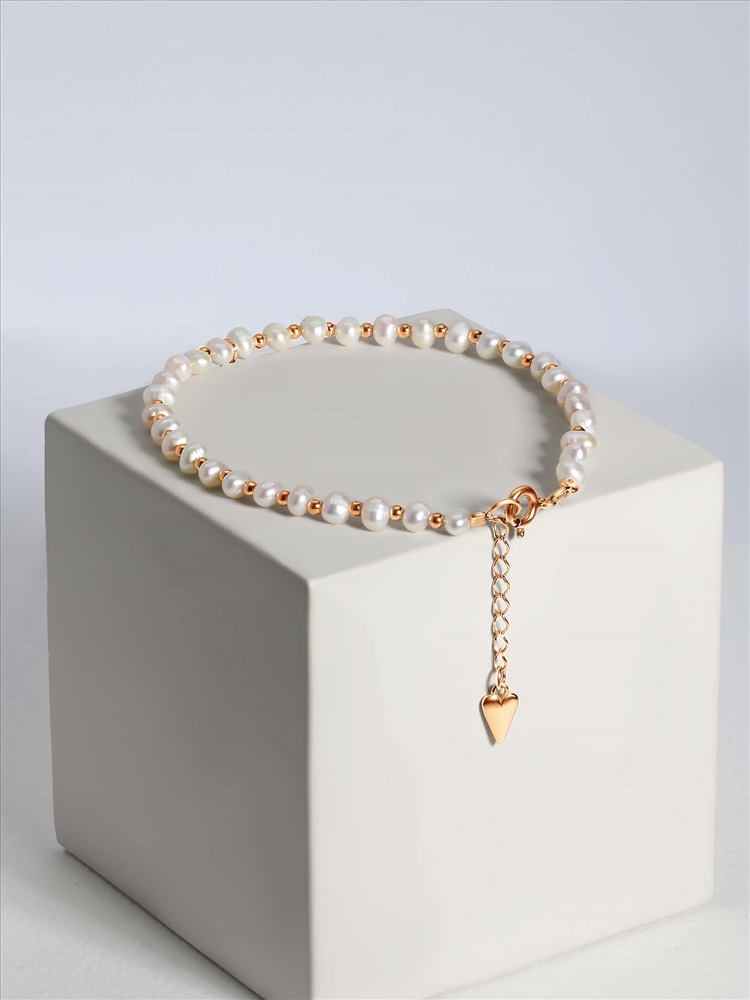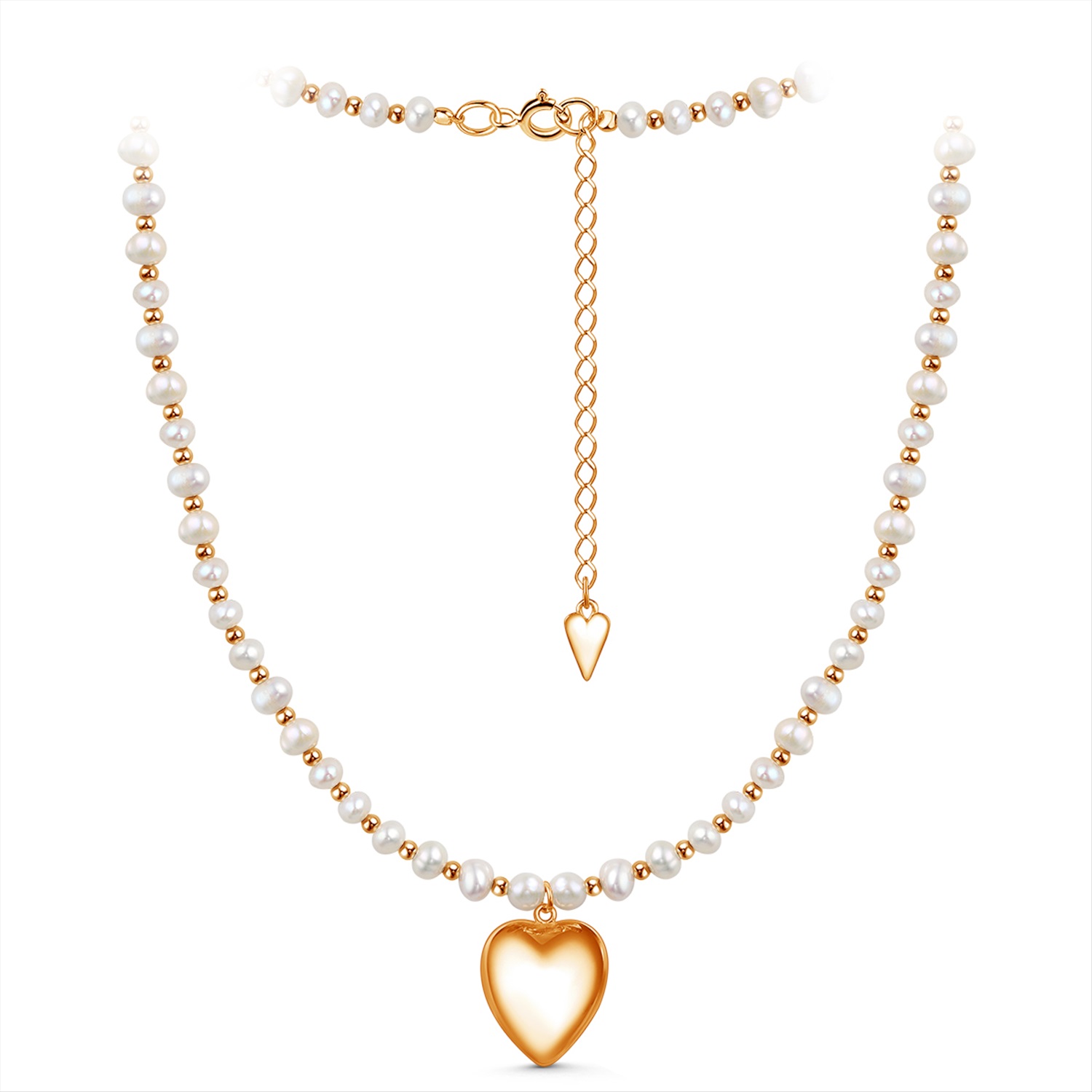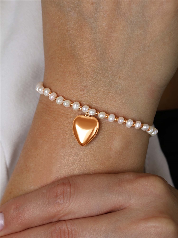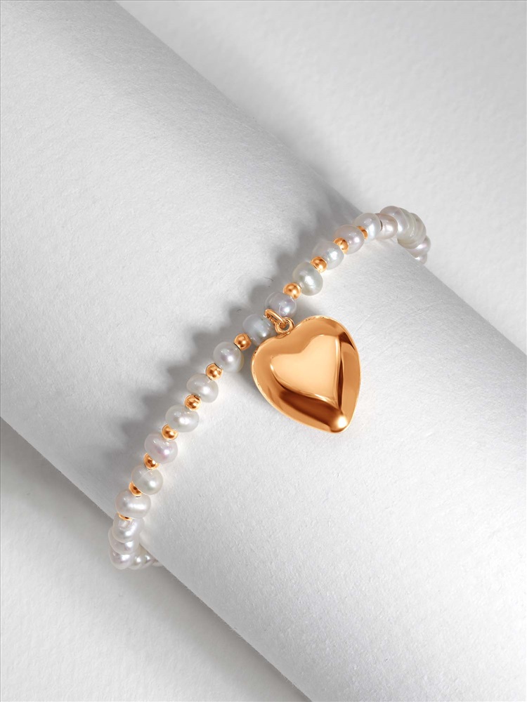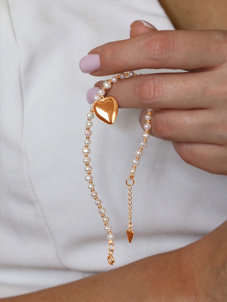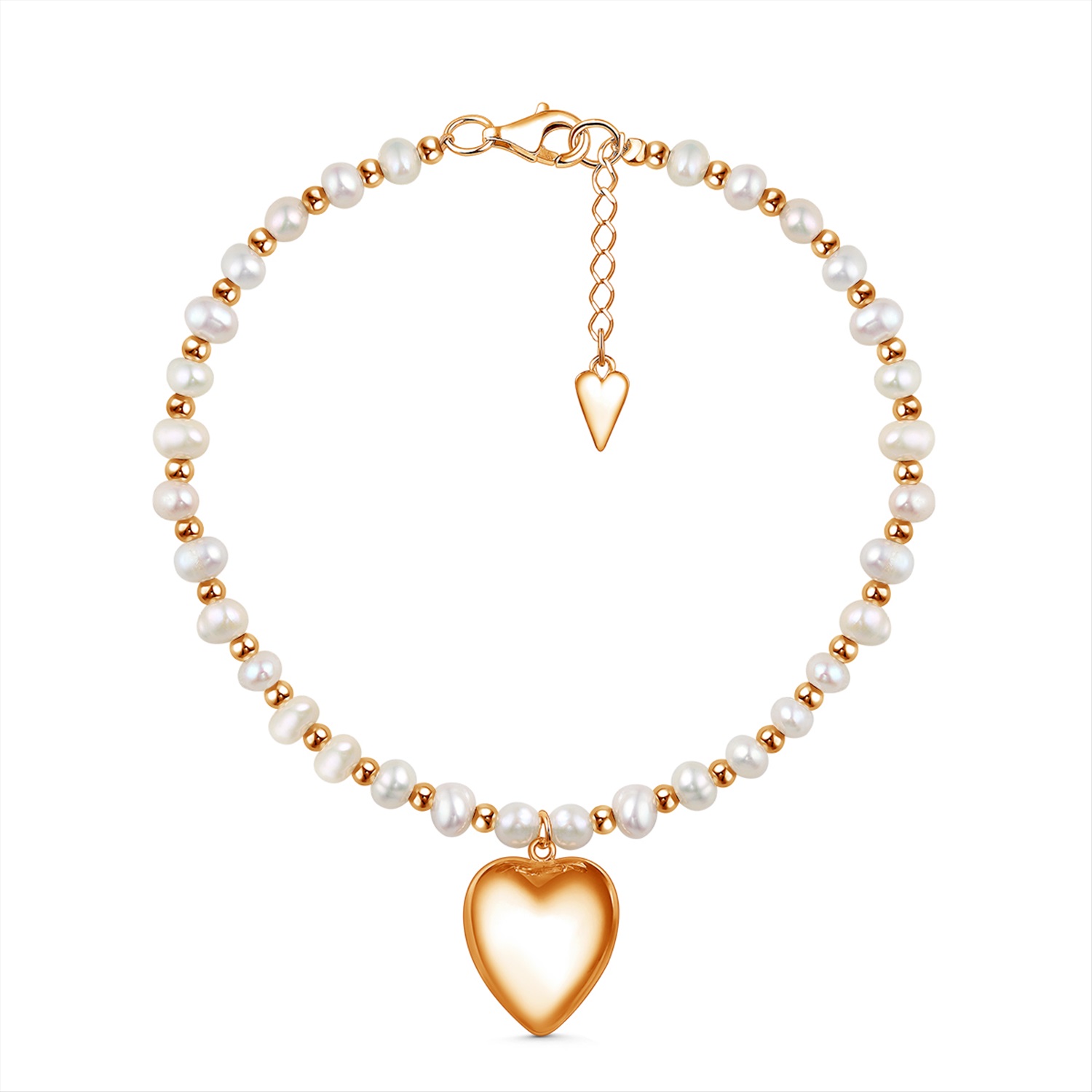 Браслет из золочёного серебра с пресноводным культивированным жемчугом - Сердце 251-20-211-18з 8 фото
