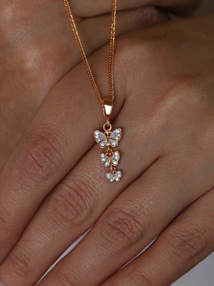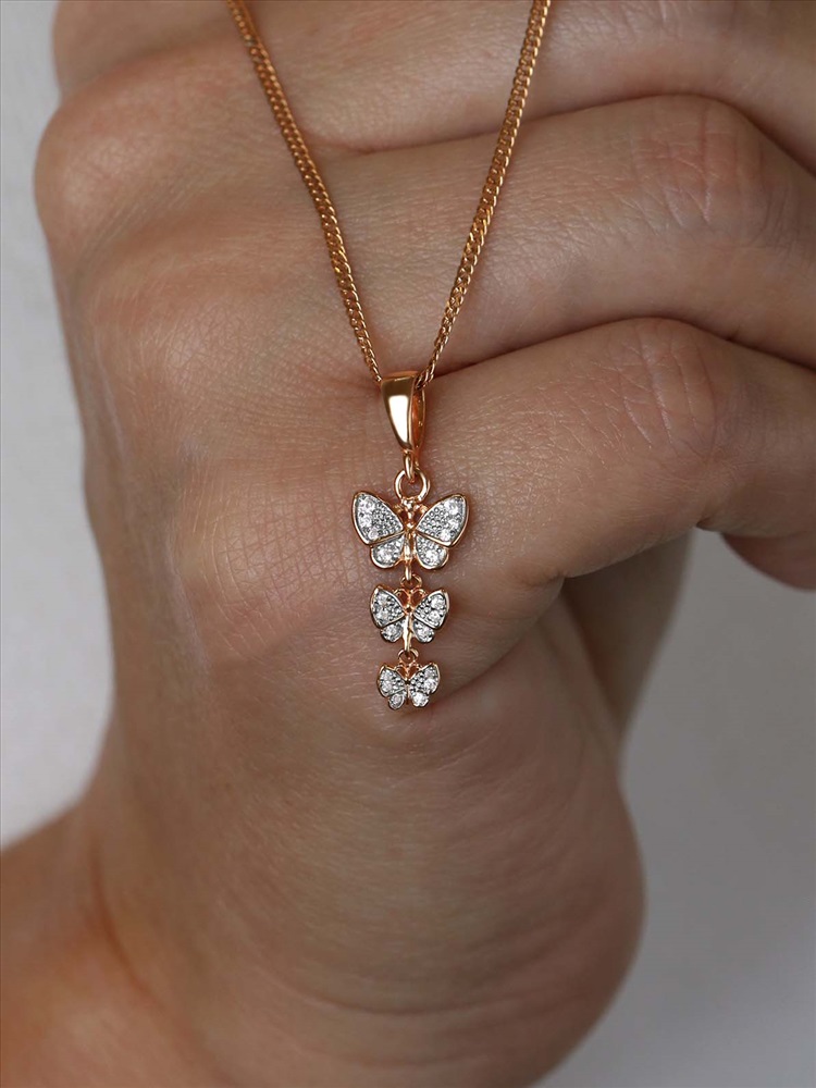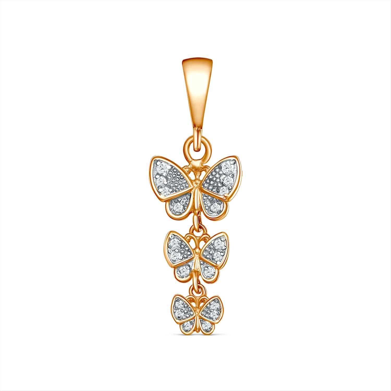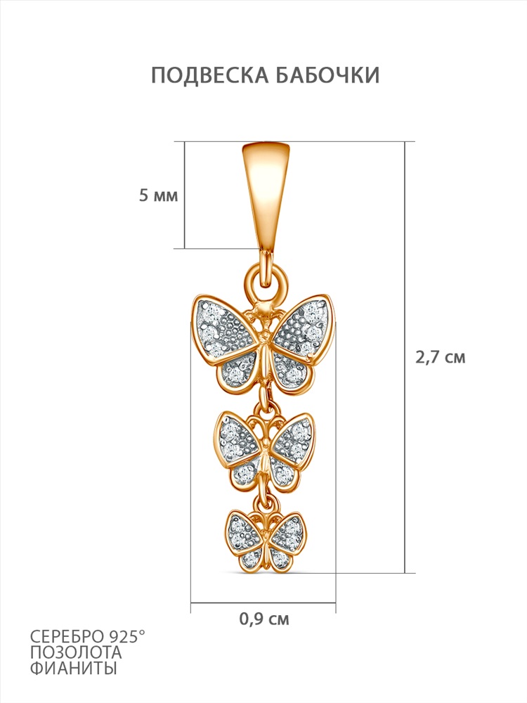 Подвеска из золочёного серебра с фианитами - Бабочки п-036р200 6 фото