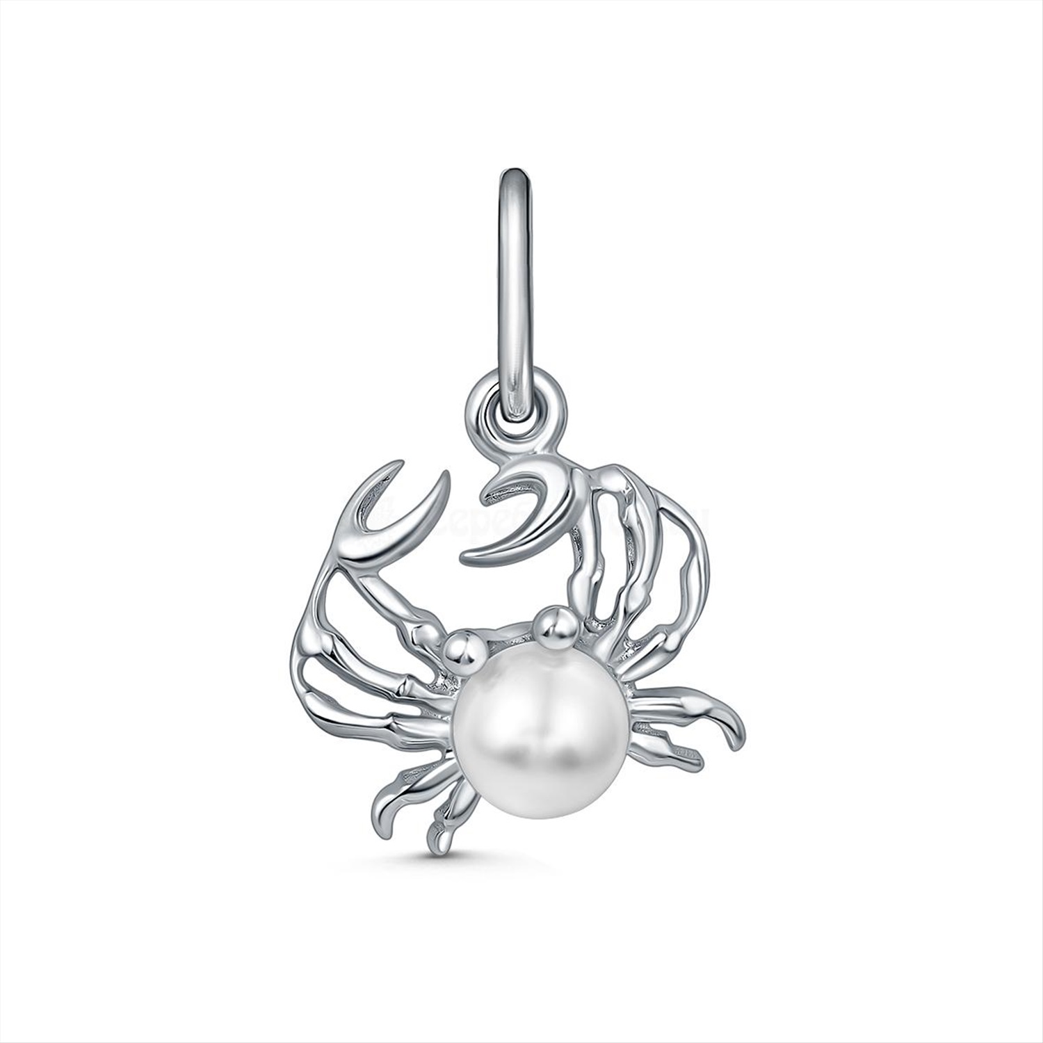 Подвеска из серебра с культивированным жемчугом и фианитами родированная - Краб ПКР-010р 2 фото