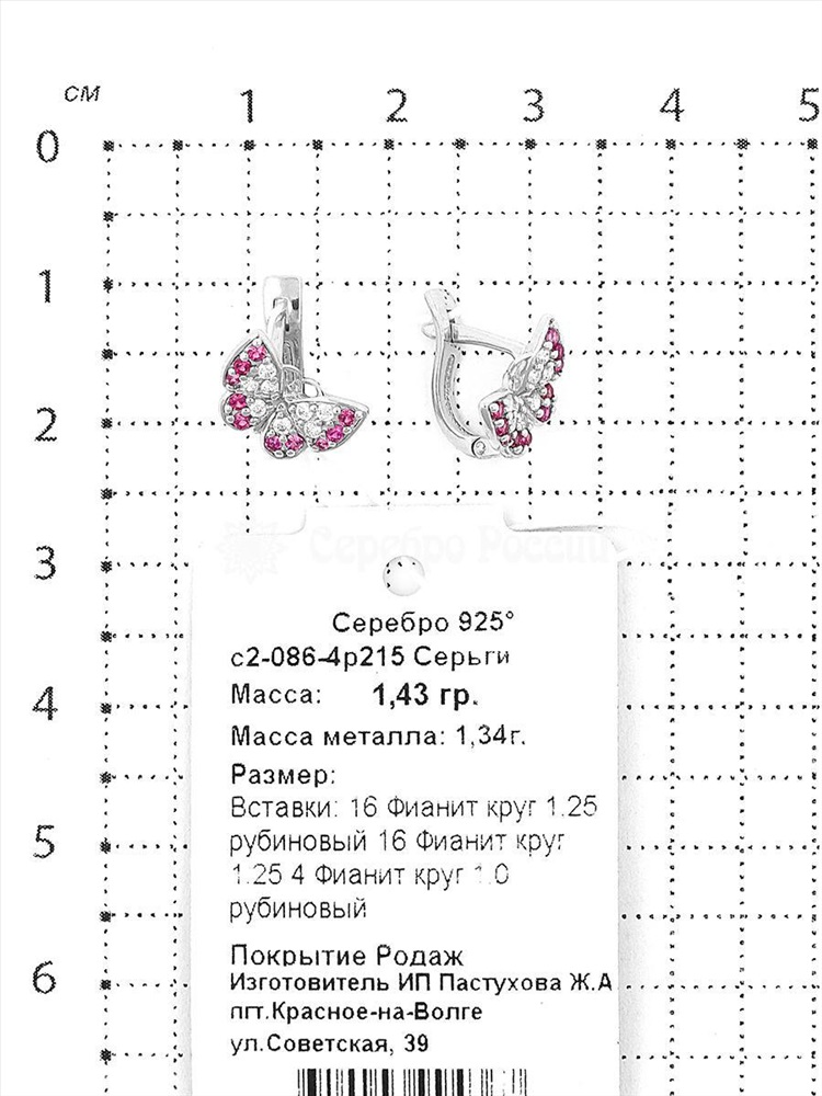Серьги из серебра с нат.шпинелью родированные 925 пробы С-3833рсч416 4 фото