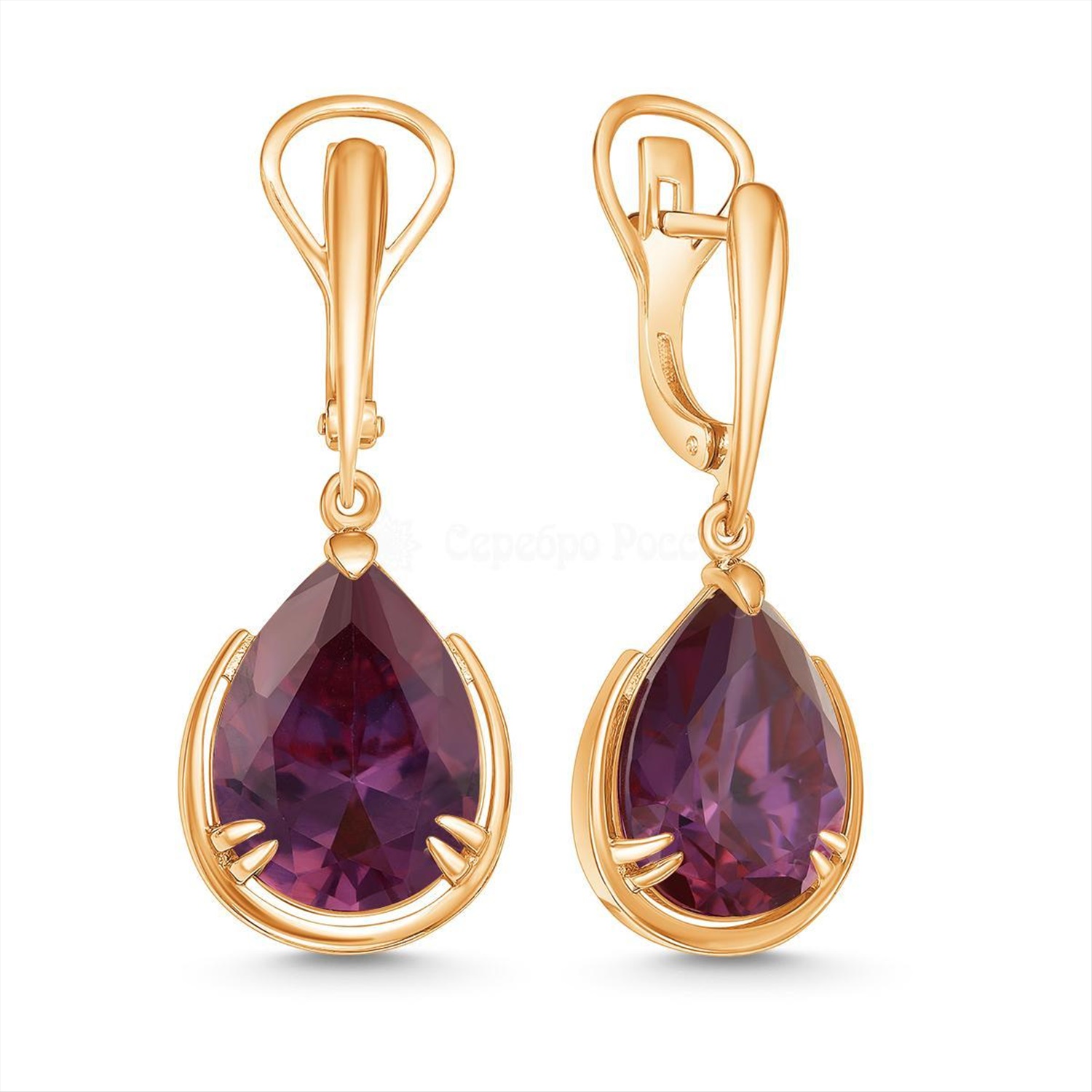 Серьги из золочёного серебра с синт. александритом 925 пробы С-3386зс946