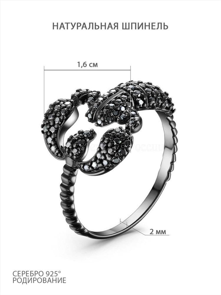Кольцо из серебра с нат.чёрным опалом и фианитами родированное 925 пробы К-3796рс1171600 4 фото