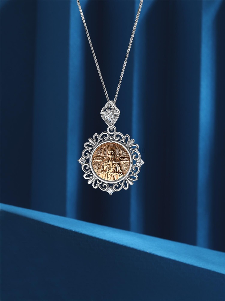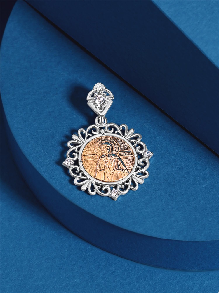 Подвеска из родированного серебра с фианитами и золочением - Святая Матрона Московская 3-392чзр 8 фото