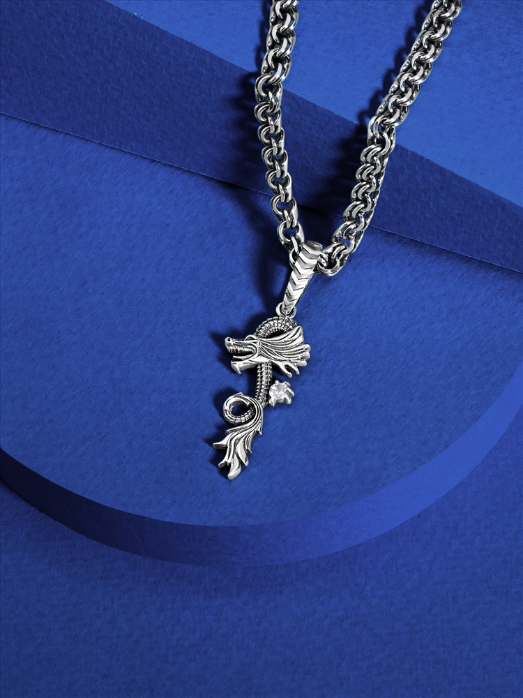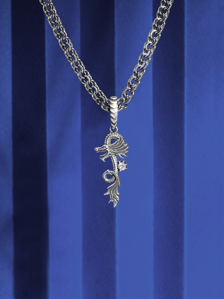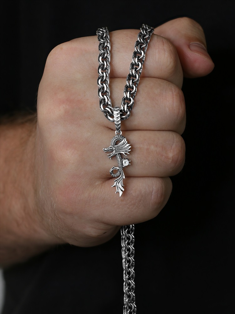 Подвеска из чернёного серебра с фианитом - Дракон ПДр-008о 6 фото