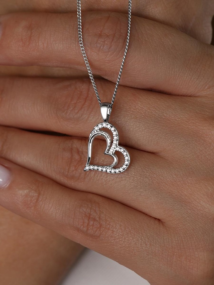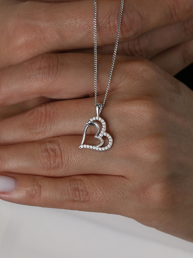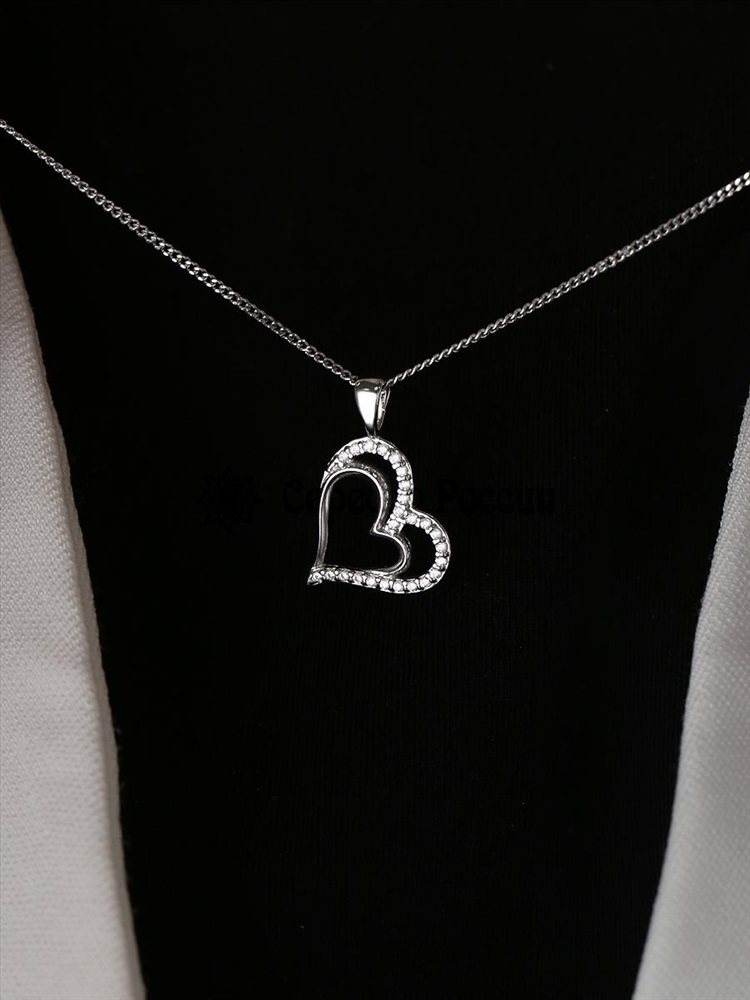 Подвеска из серебра с чёрным агатом и фианитом родированная - Сердце П-2689-Р-Ча 2 фото