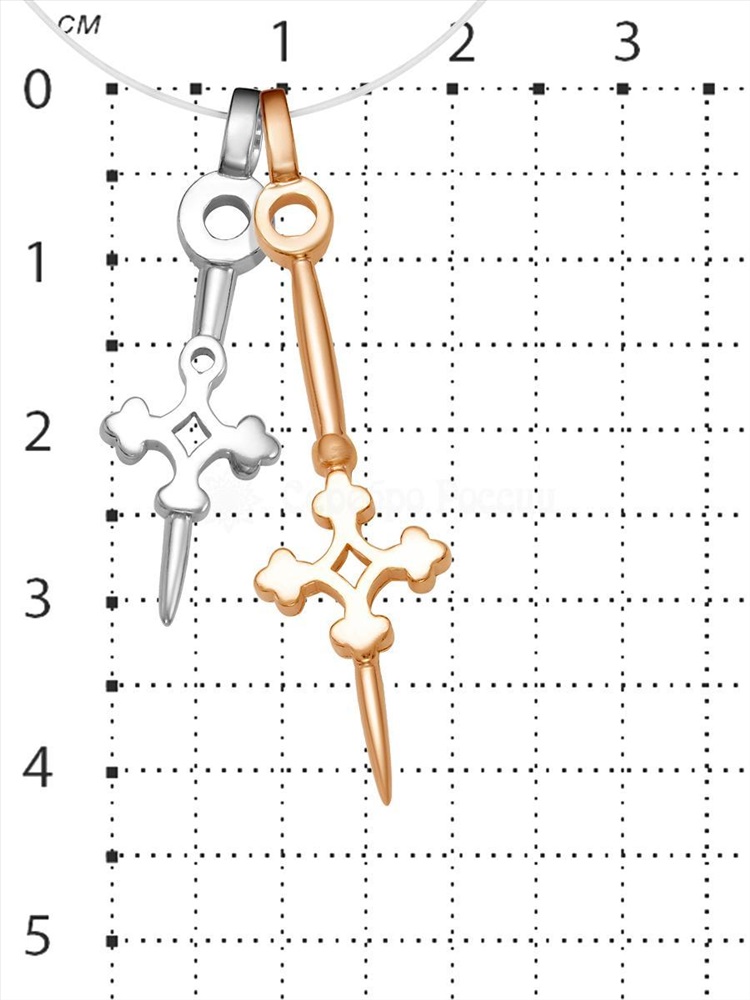 Подвеска-крест из родированного серебра с нат.шпинелью и золочением - 2,4 см 925 пробы 7-04рз416 6 фото