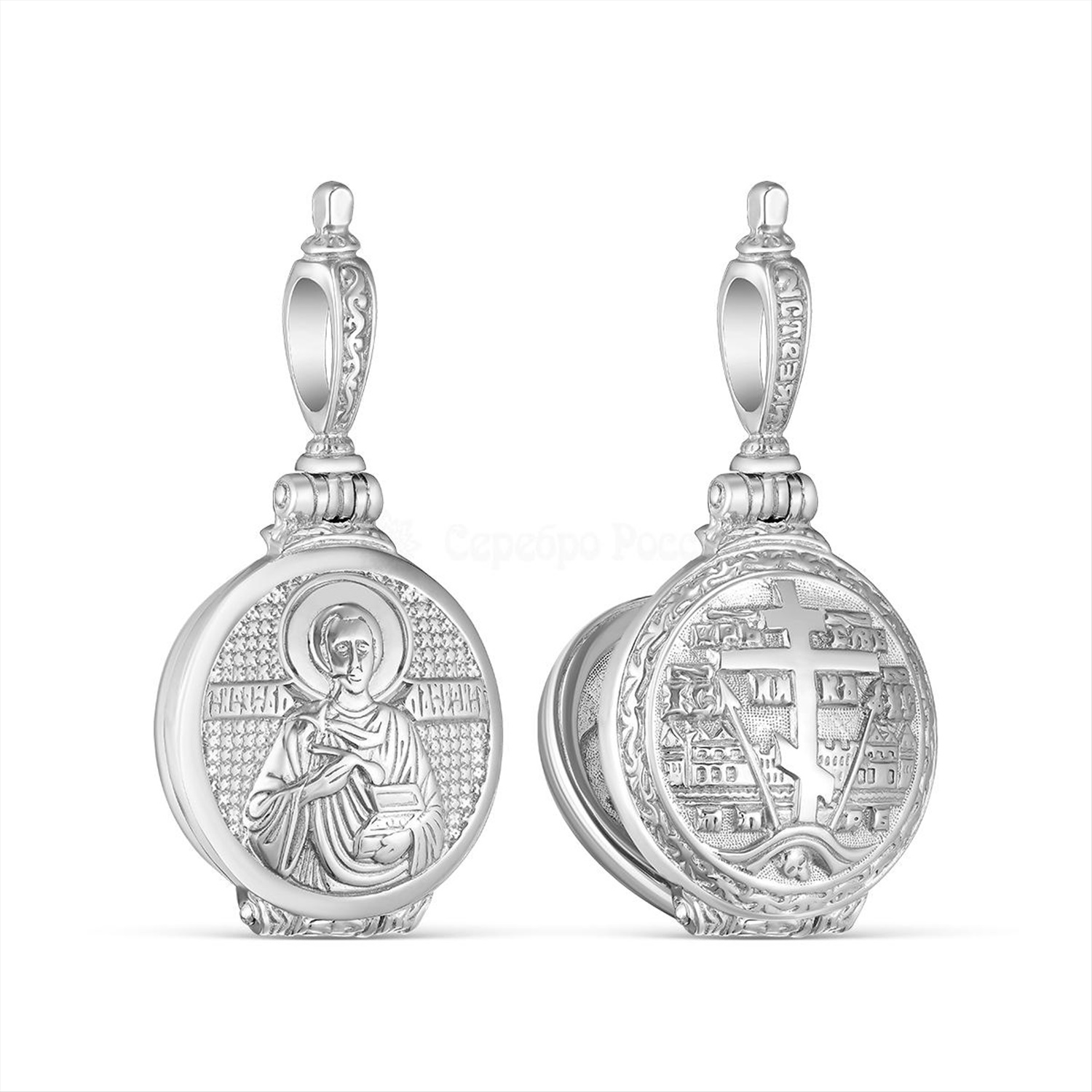 Складень из серебра родированный св.Пантелеймон 925 пробы М-011р 2 фото