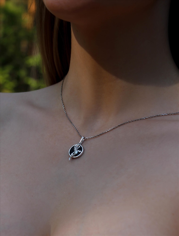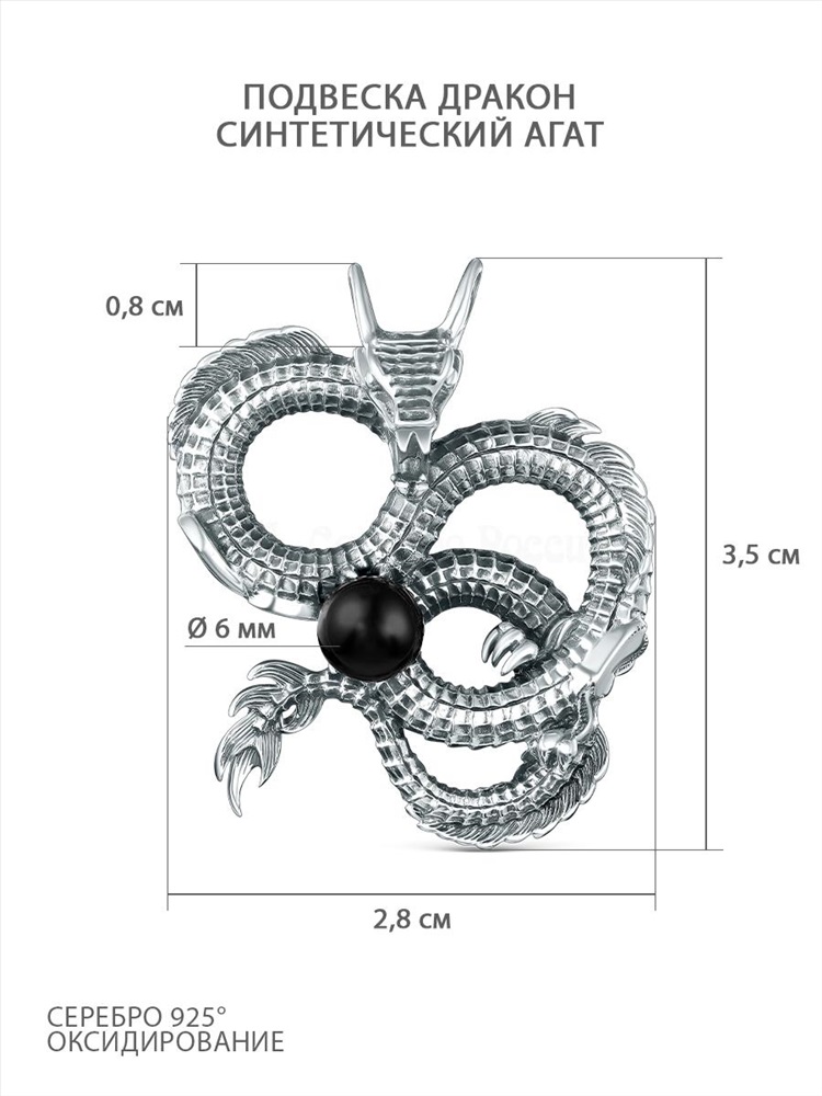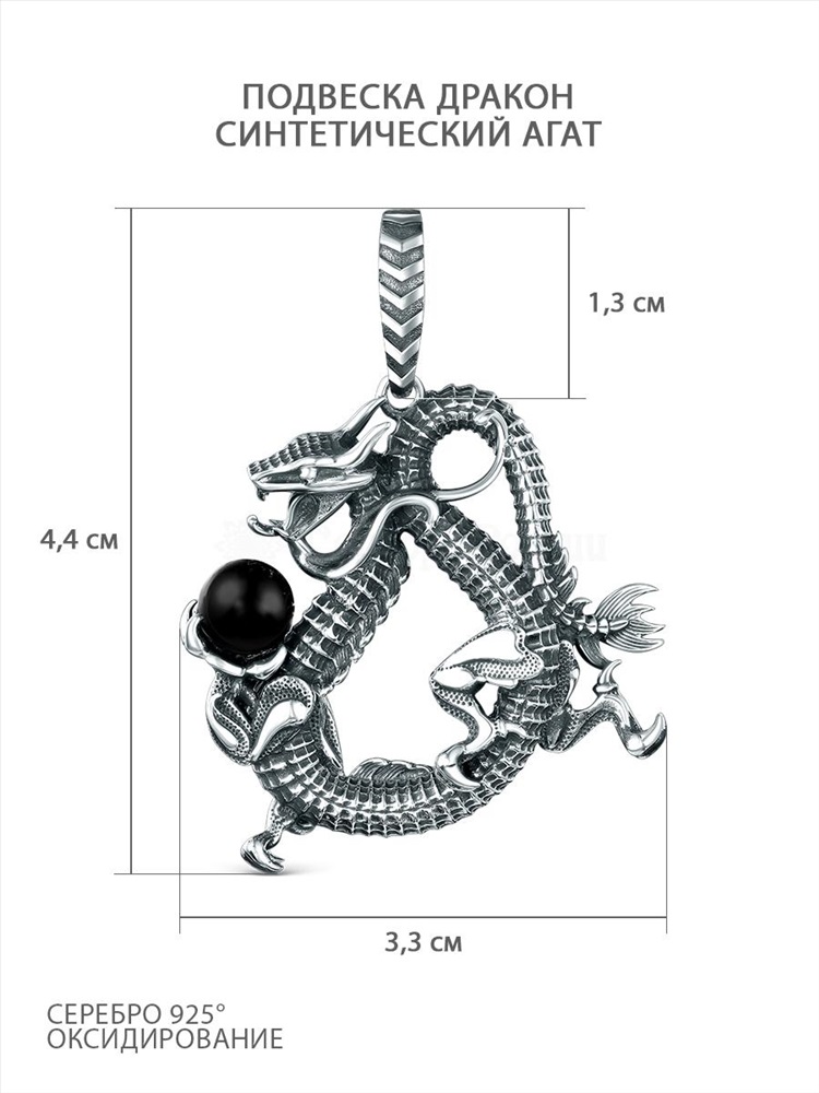 Подвеска из чернёного серебра с синтетическим агатом - Дракон 925 пробы ПДр-004о 2 фото