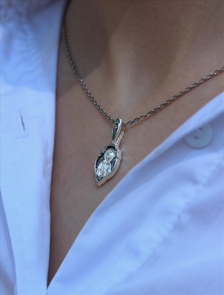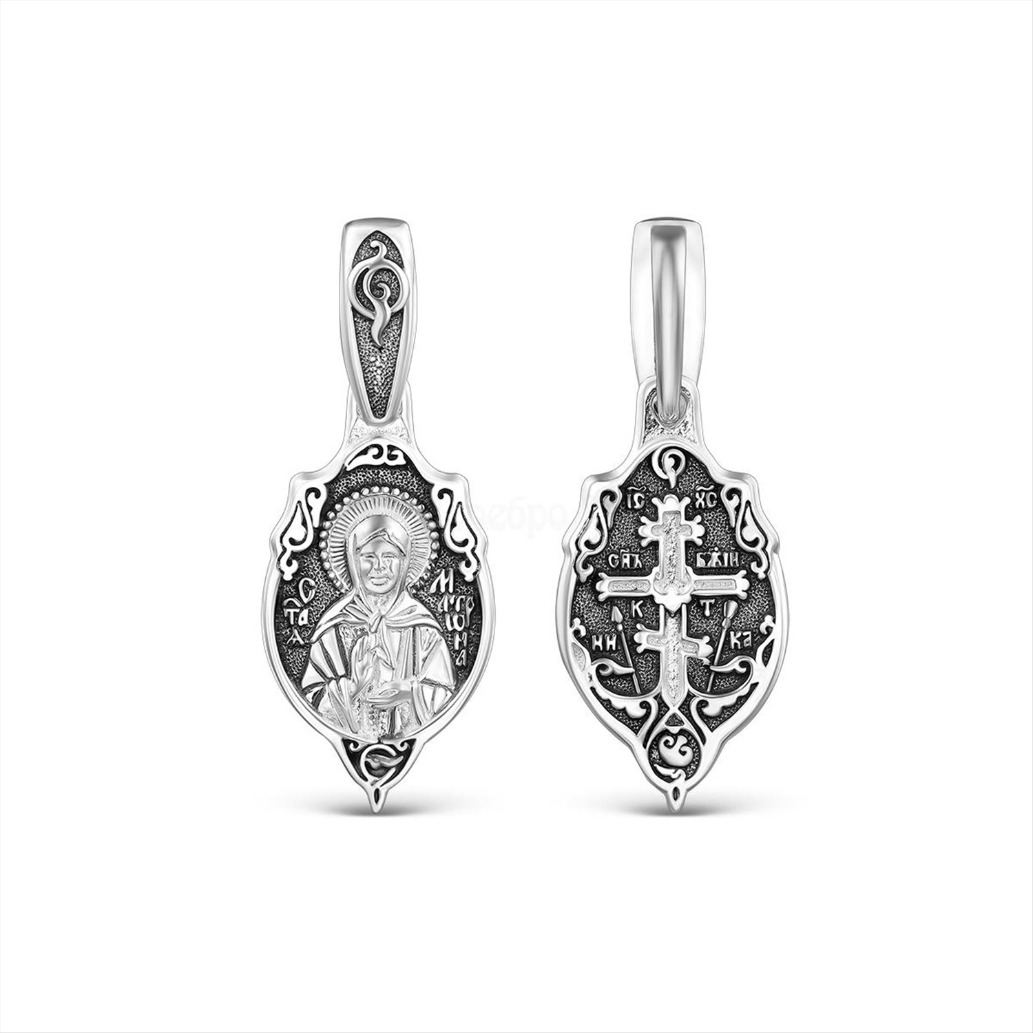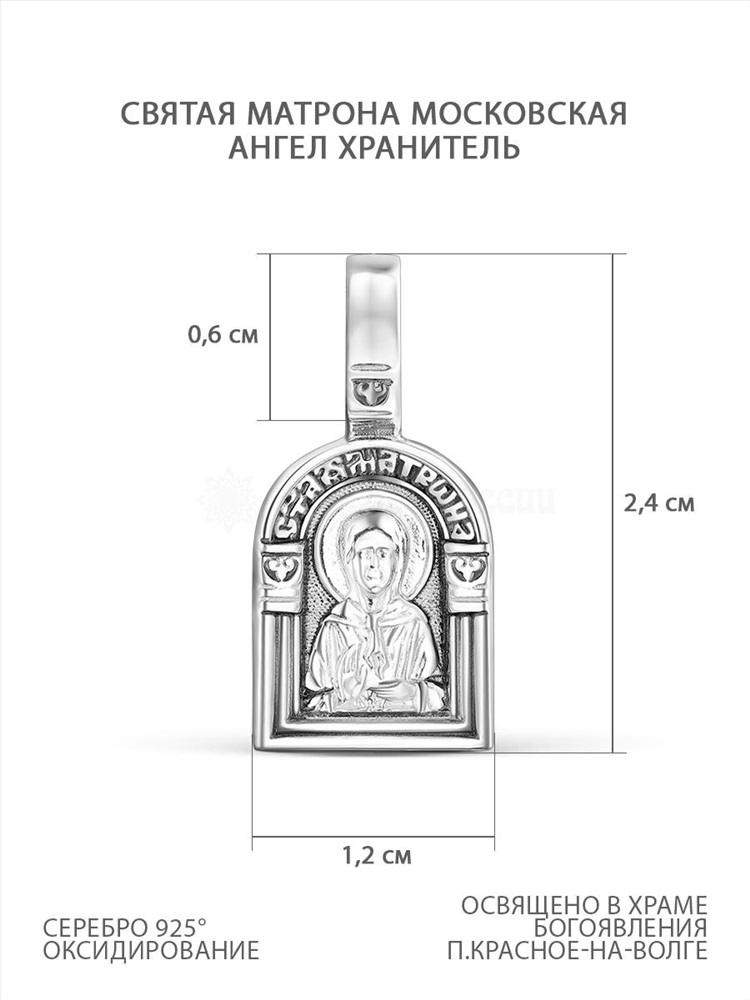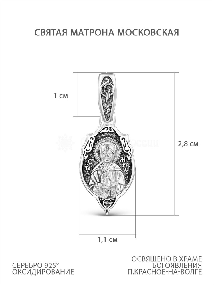 Подвеска религиозная из чернёного серебра - Святая матрона 925 пробы к3-316ч 2 фото