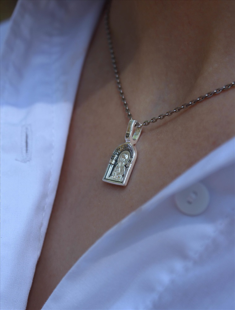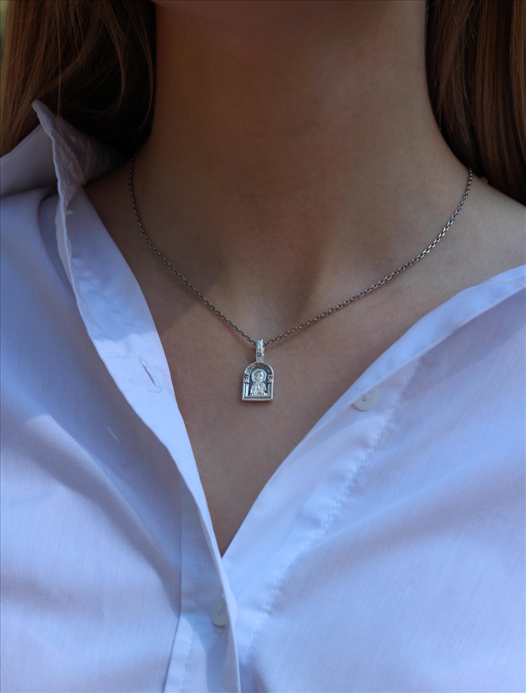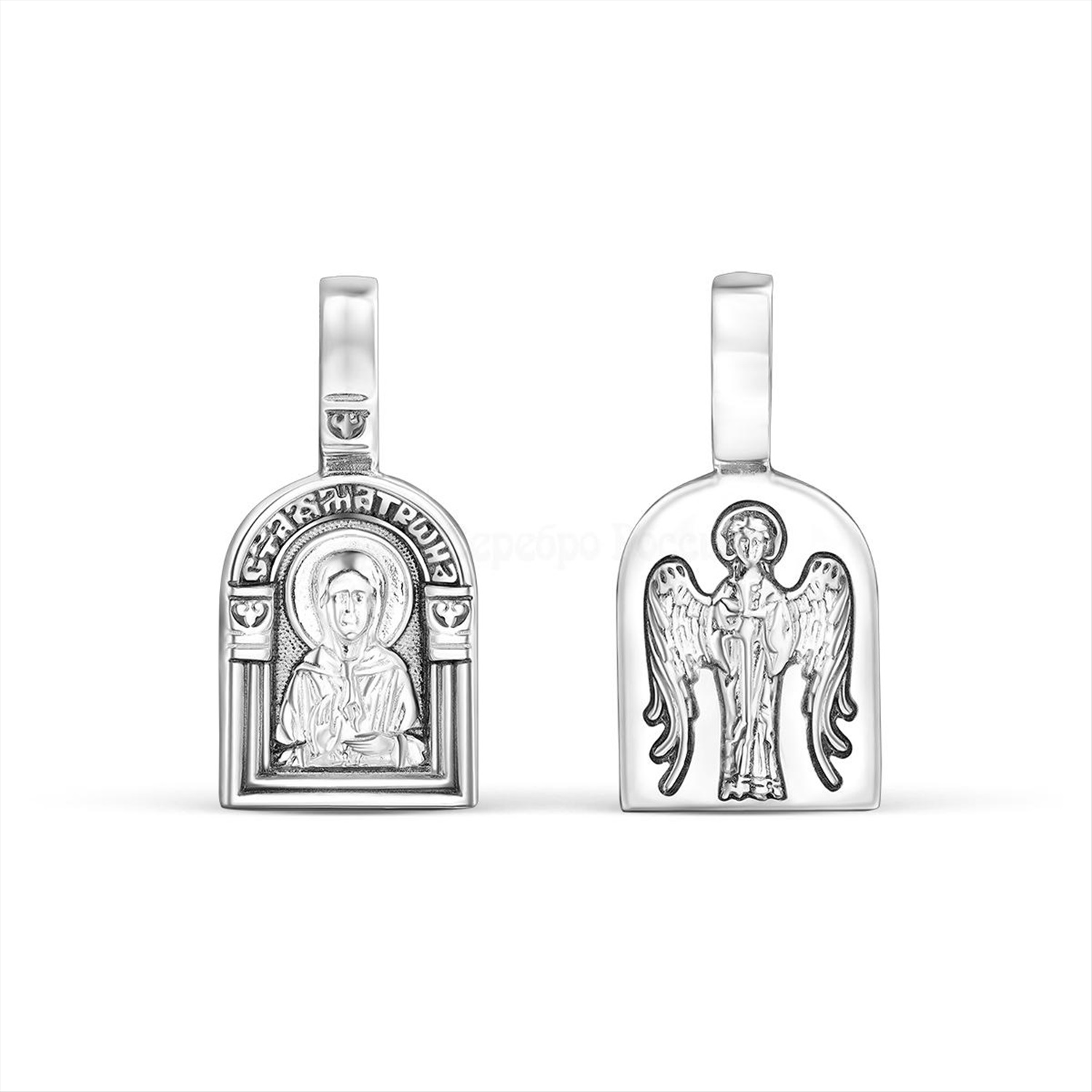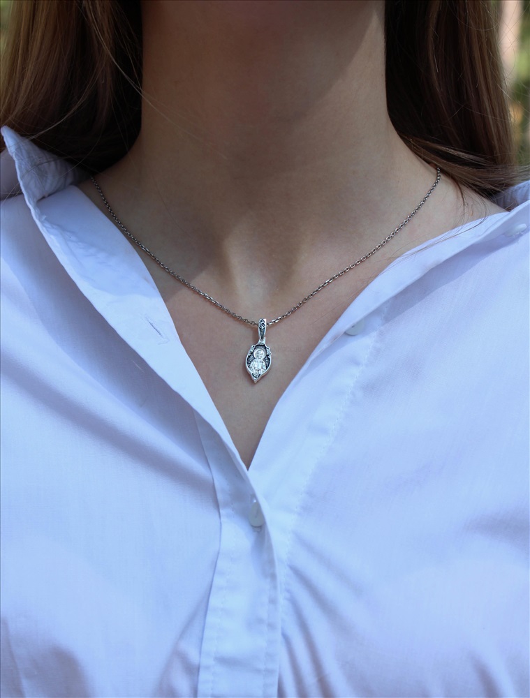 Подвеска религиозная из чернёного серебра - Святая матрона 925 пробы к3-316ч 2 фото