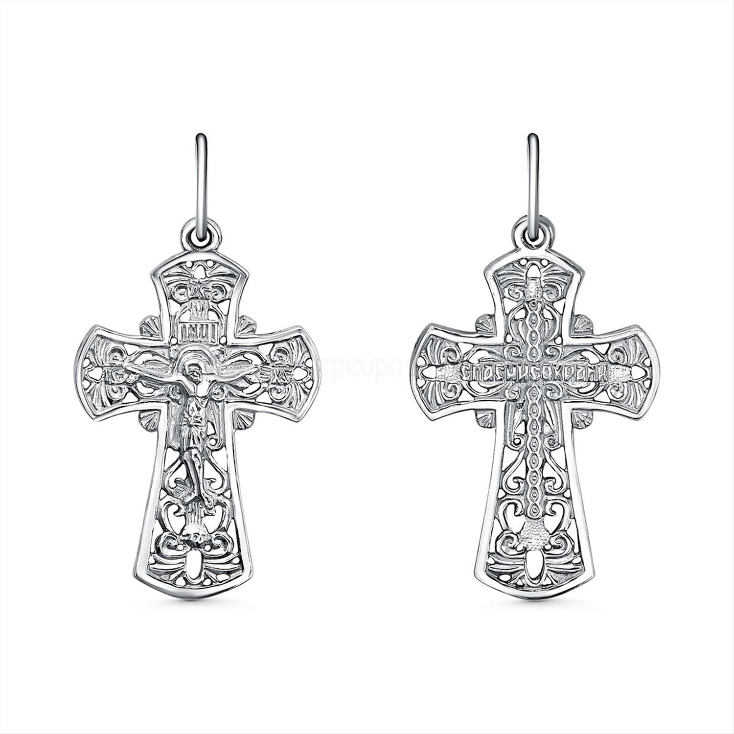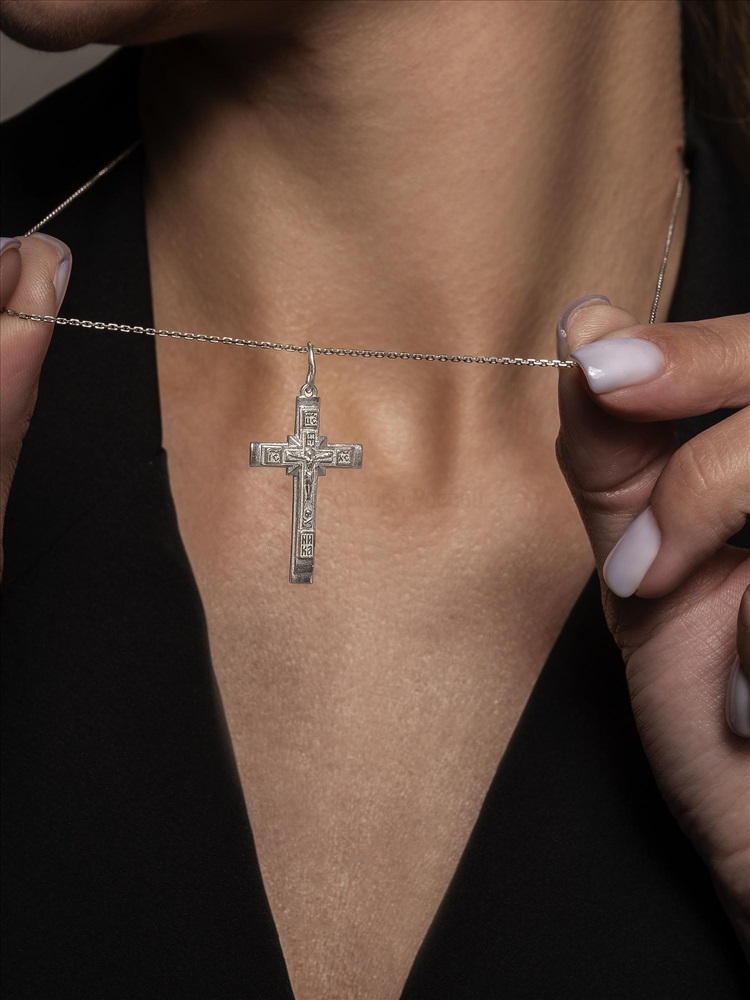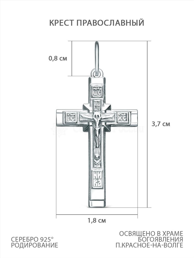 Крест из серебра родированный - 3,5 см 925 пробы 2-432р