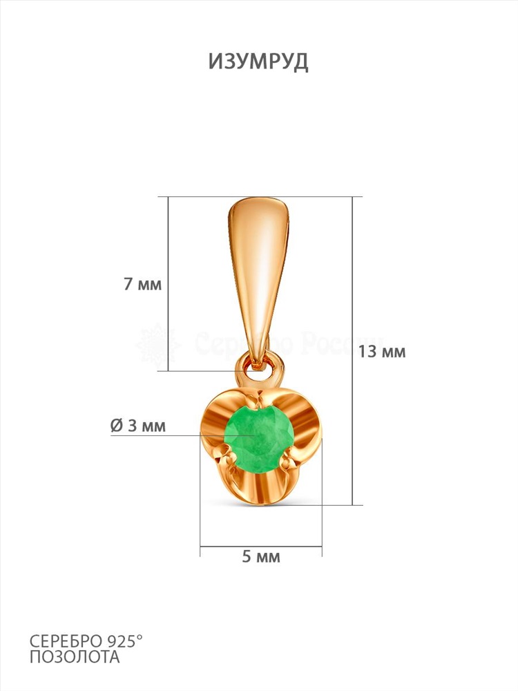 Подвеска из золочёного серебра с нат.изумрудом 925 пробы п3-944-1з433 2 фото