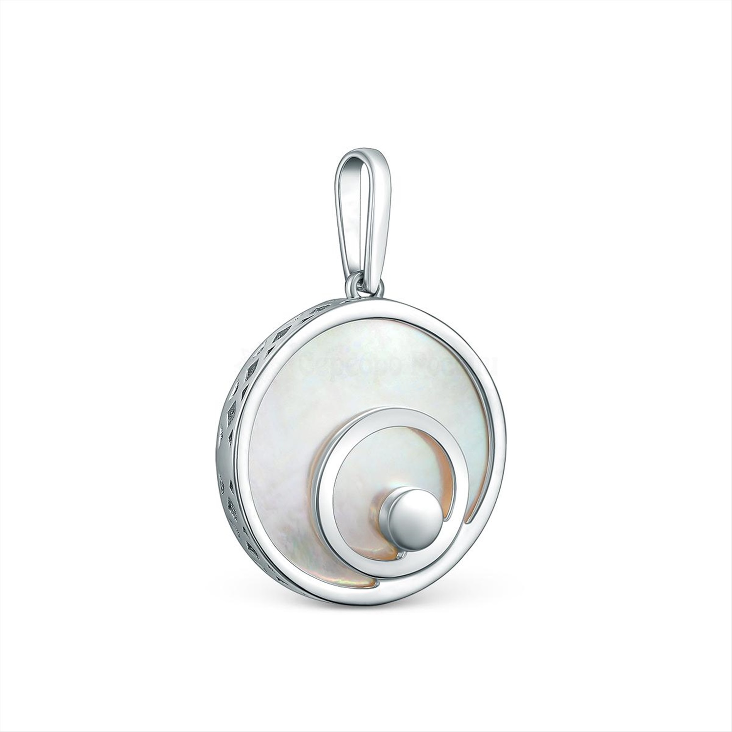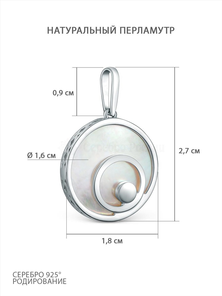 Подвеска из серебра с натуральным перламутром родированная - Круги 925 пробы П-2792-Р 2 фото