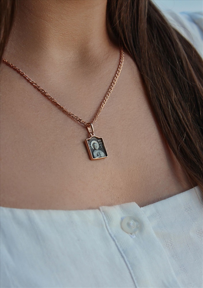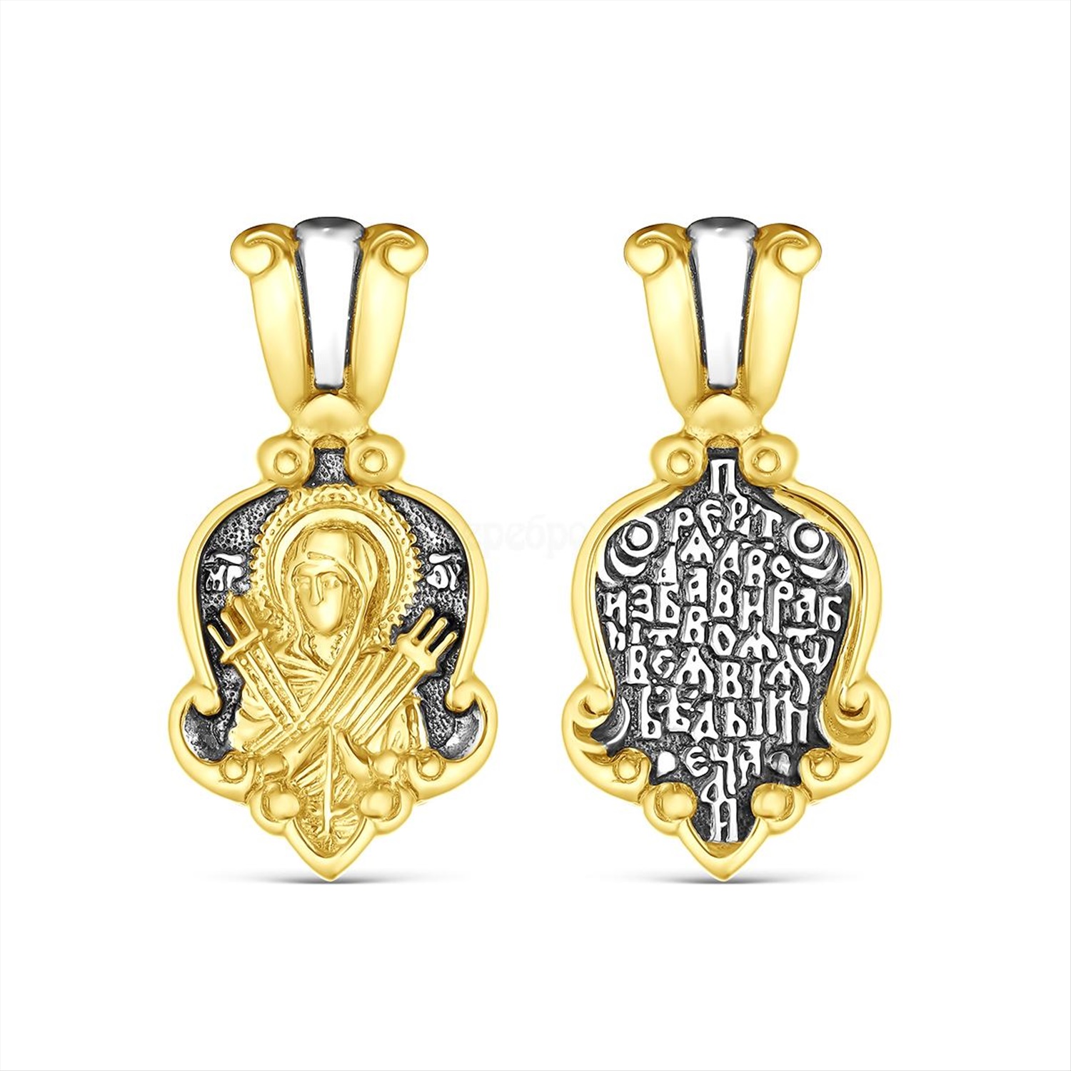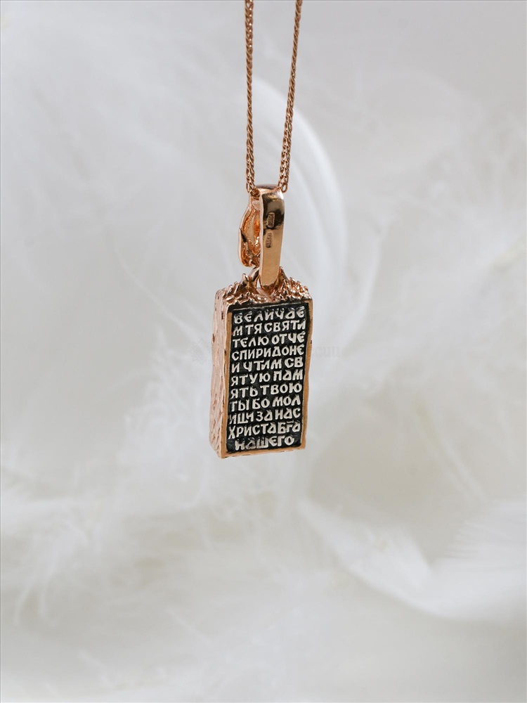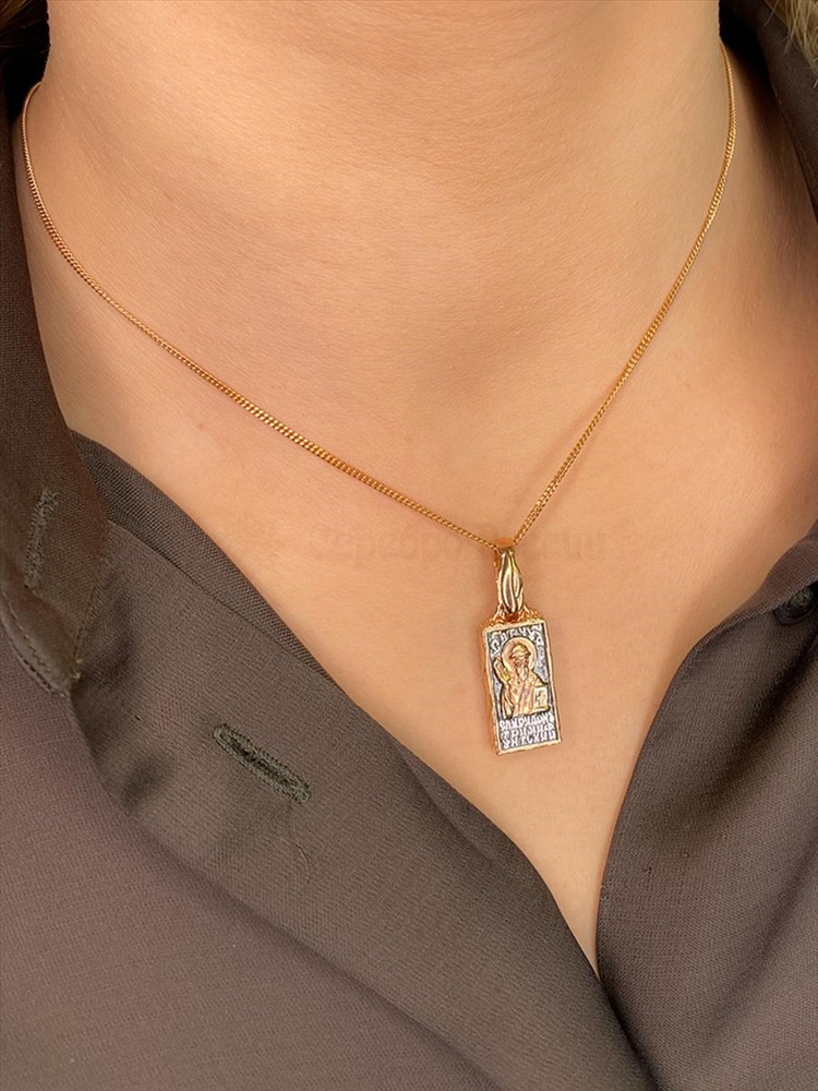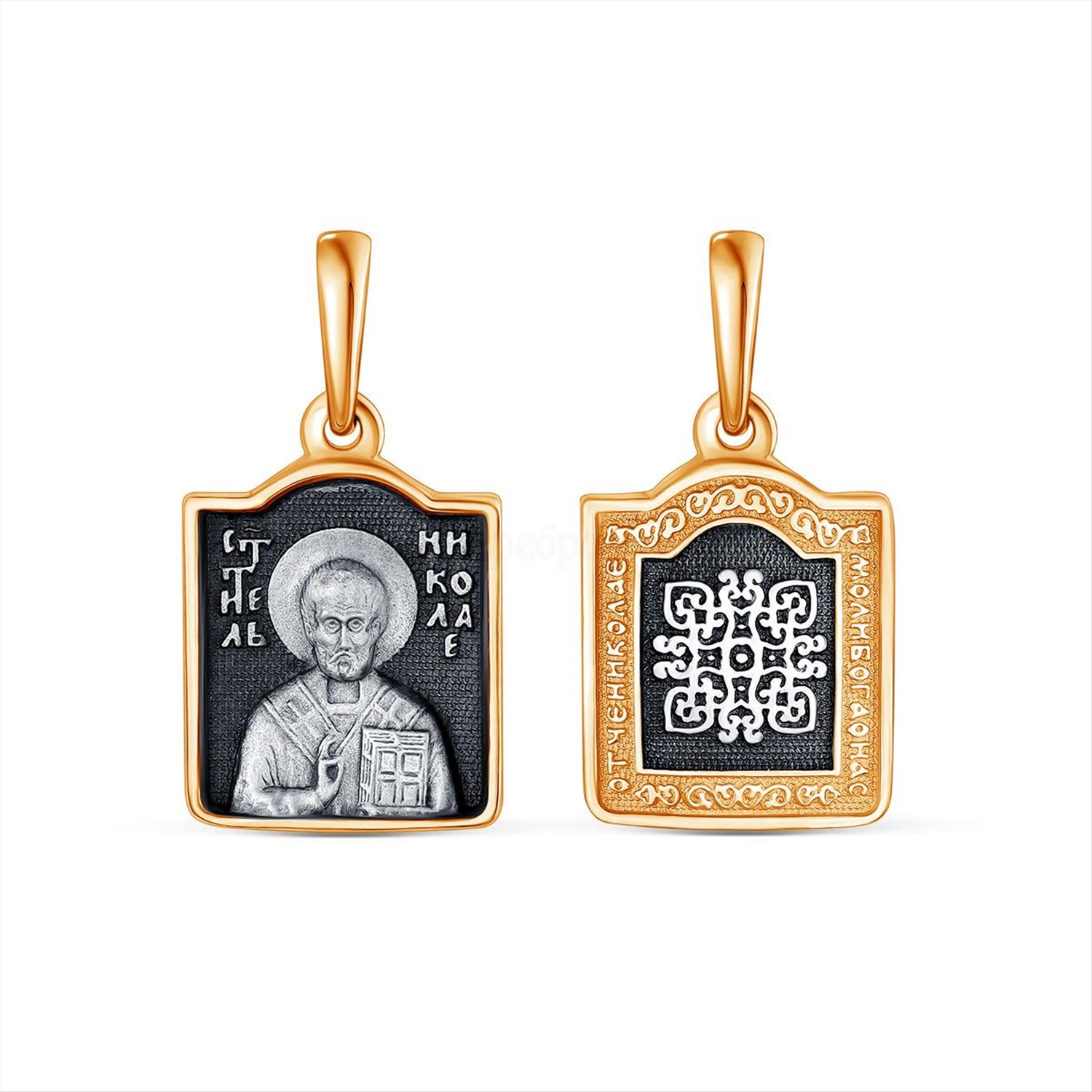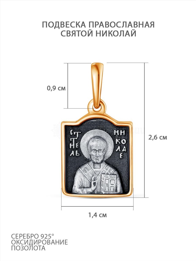 Подвеска религиозная из чернёного серебра с позолотой - святой Николай, моли Бога о нас 925 пробы 01063пз 4 фото