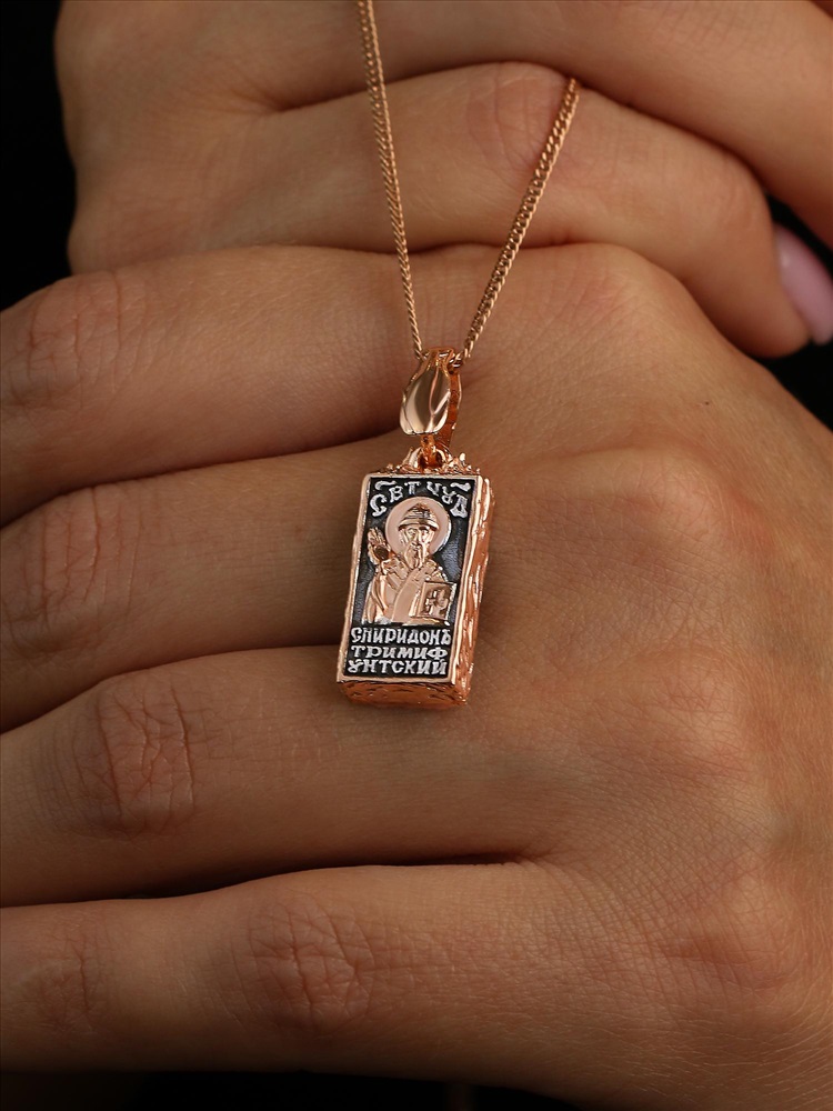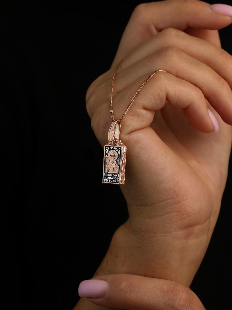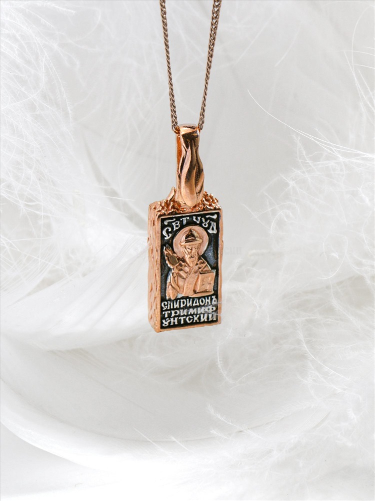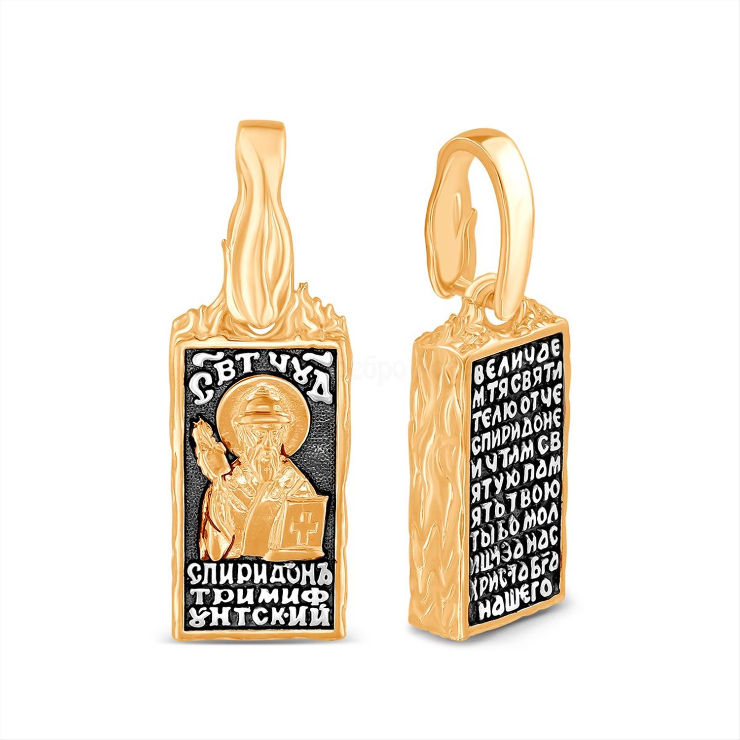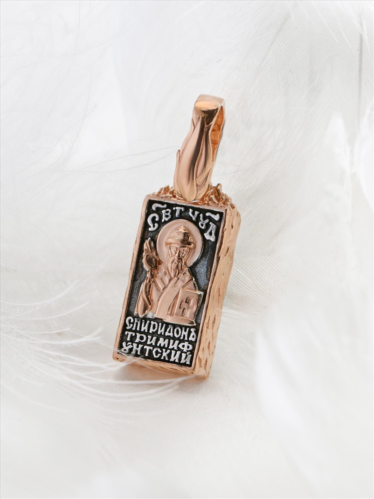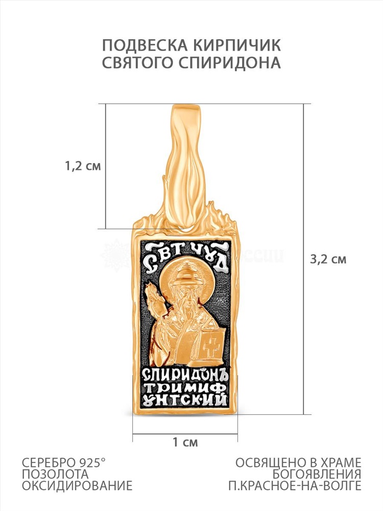 Подвеска-икона из чернёного серебра с золочением - Кирпичик св.Спиридона 925 пробы 3-610чз 9 фото