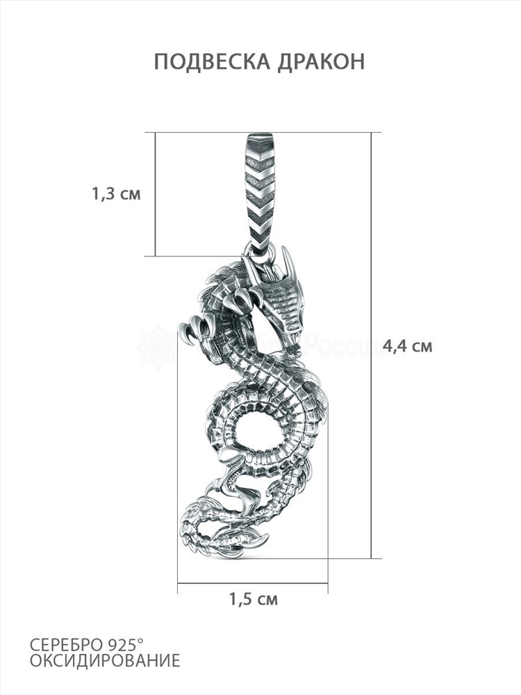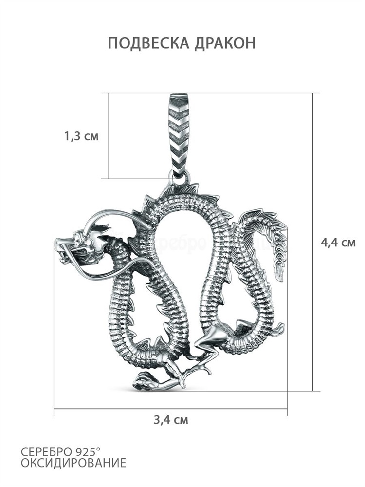 Подвеска из чернёного серебра - Дракон 925 пробы ПДр-006о 2 фото