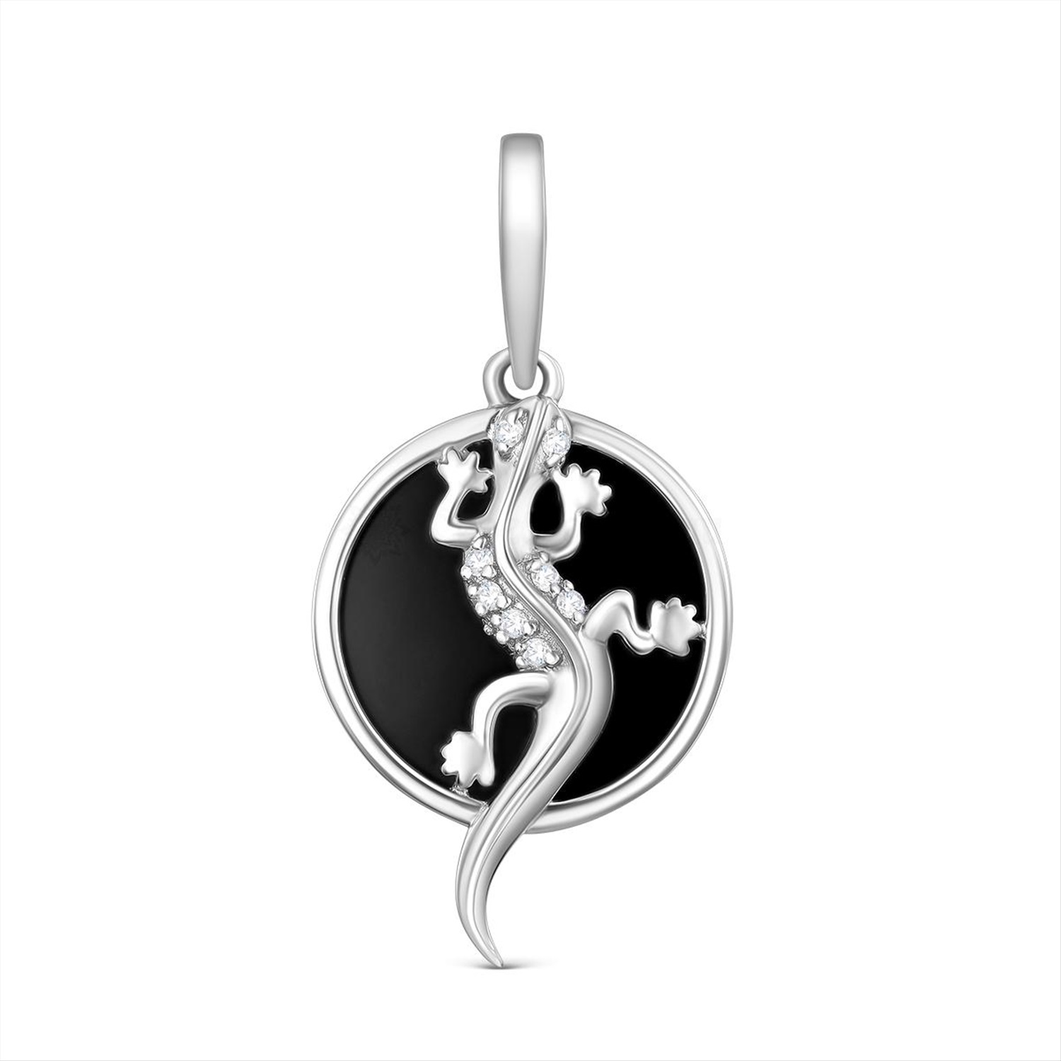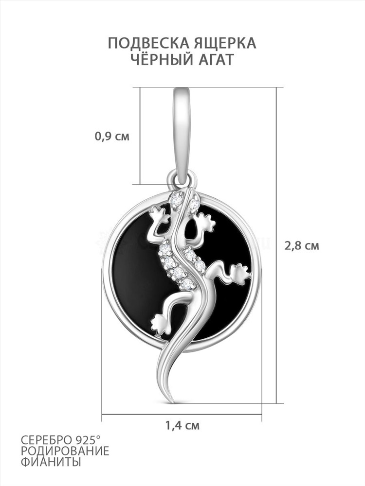Подвеска из серебра с чёрным агатом и фианитами родированная - Ящерка 925 пробы П-2660-Р-Ча 4 фото