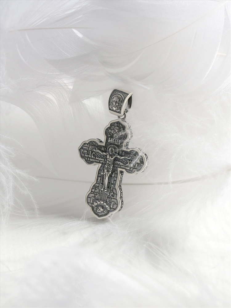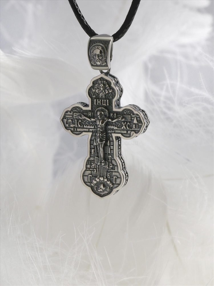Крест православный из чернёного серебра - Неупиваемая Чаша, молитва Кресту, 3,7 см КР-0048о 2 фото