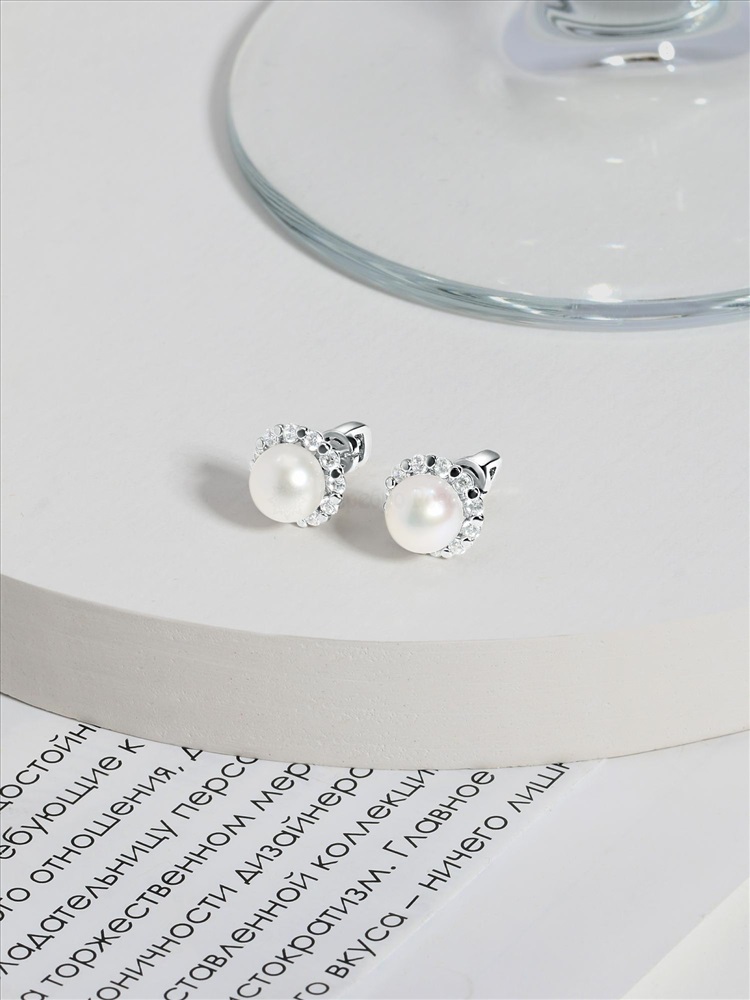 Серьги из серебра с фианитами родированные с-4263-р 2 фото